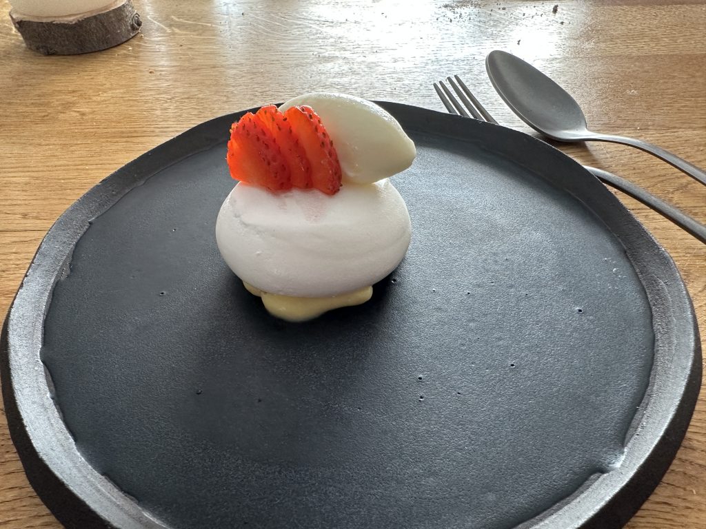 Dessert was a showcase for beautiful sweet strawberries with a fig leaf pavlova, another original combination but another one that worked perfectly and made for a memorable end to a memorable meal. It’s clear that the commitment to sustainability here is more than just window dressing and the innovative approach to executing responsibly sourced produce is the perfect foil for this approach. The “Wastage” course is one of the most intriguing things I’ve seen on a menu in some time and would be enough to tempt me back by itself, though the rest of the meal represented great value for £45 regardless. Tom and Laurissa earned a great reputation at The Rattle Owl and I have every confidence that they’ll make a great success of this venture in Helmsley regardless of the difficult climate.