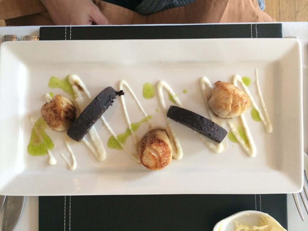 Relaxing into the bar/dining room, we decided in favour of seafood to be accompanied by a New Zealand Sauvignon Blanc. Starters of scallops & black pudding and a pesto bread topped with mushrooms & poached egg were beautifully presented and lighter than they may have sounded on the menu.