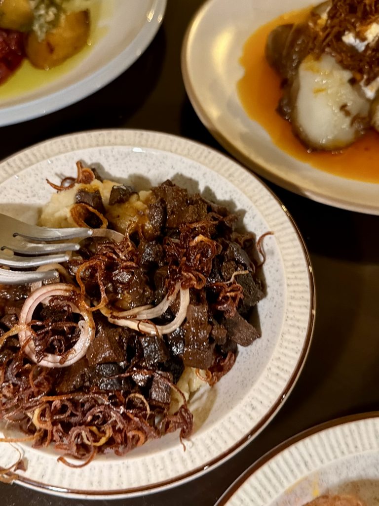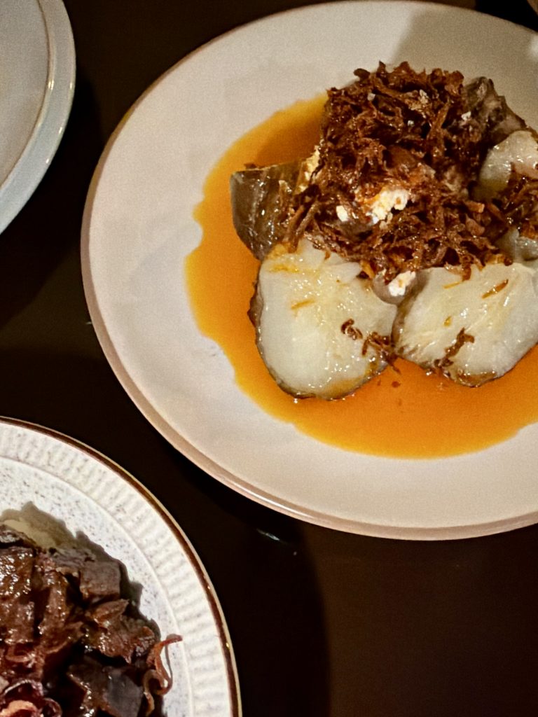 Beetroot is another favourite of mine but I tried to show restraint in the face of my vegetarian friend who didn’t share my recourse to the meat based dishes, with limited success. Simply presented with a zesty gremolata to help it live its best life, another tremendous showcase of one of my favourite vegetables. Meat dishes came next with lamb sausage coming accompanied by beetroot that, this time, had been given a touch of charring. The lamb was tender and well seasoned while benefitting from a generous spice too but my favourite plate matched one of my favourite vegetables to an unusual meat. Celeriac is a much more flexible vegetable than some give it credit for and presented as a mash here it made a superb backdrop for gamey chunks of ox heart with crispy shallots thrown in for good measure. All this food only attracted a debt of £45 which was superb value, the quantities certainly weren’t skimped on and we even had a few bits leftover to take home for snacking on. Wet is a great addition to a street which is hopefully on the up again now, the wine was memorable and clearly chosen with great care while the food represented superb value and some originality.