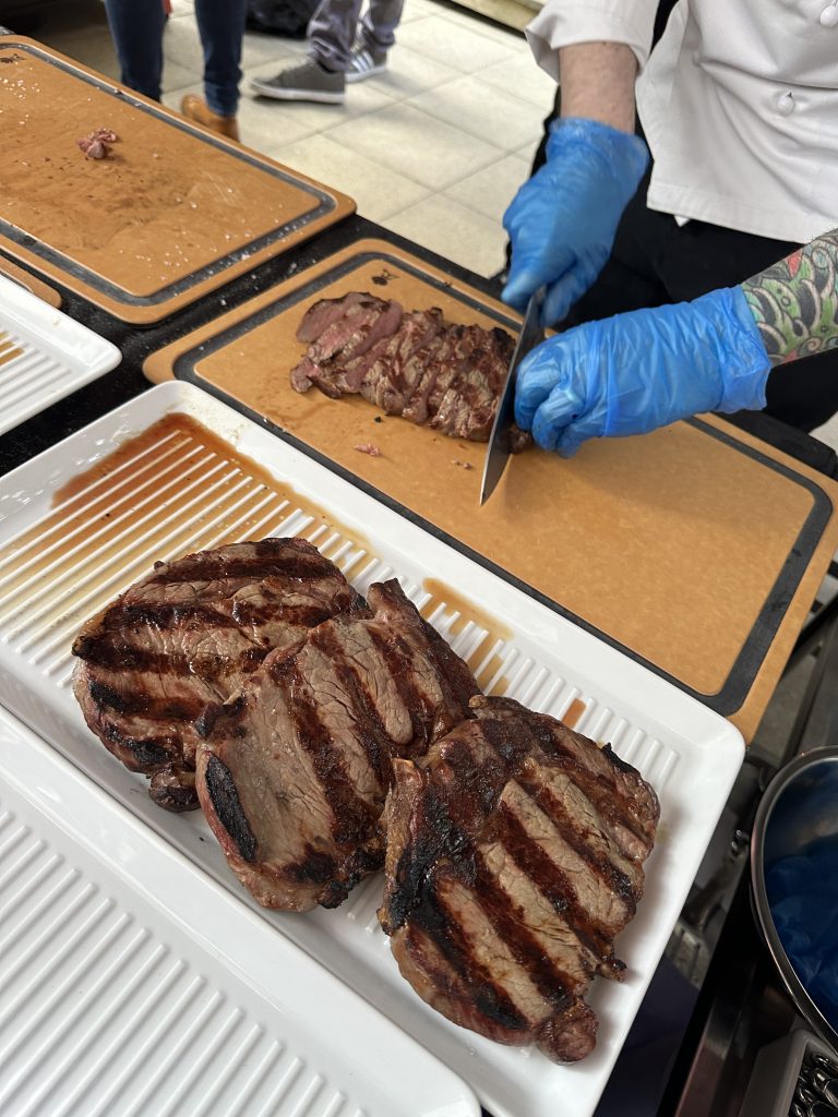 The launch event started with some hands on pizza dough stretching by way of illustrating the versatility of a barbecue with some members of the audience more successful than others. I dodged the public trial and just settled for a good look at the results. The second demonstration was rather more traditional as we were introduced to some beautiful ribeye steaks. These were cooked back to back on gas and traditional charcoal barbecues, both delivering bags of flavour and smoky character.