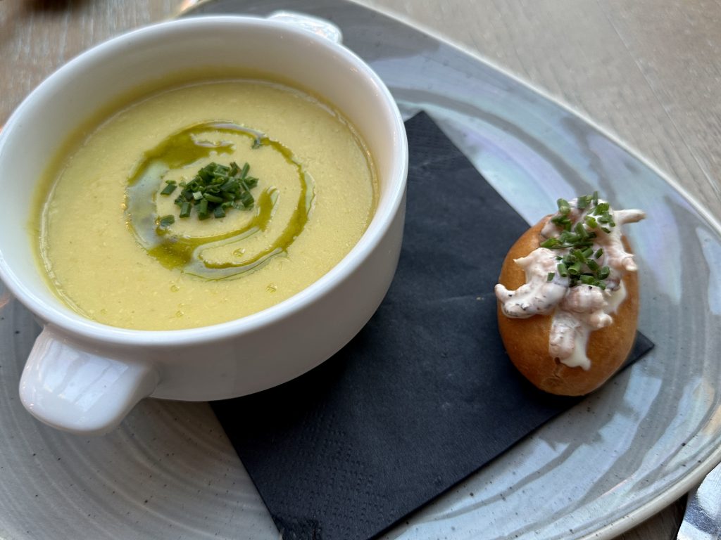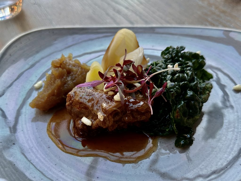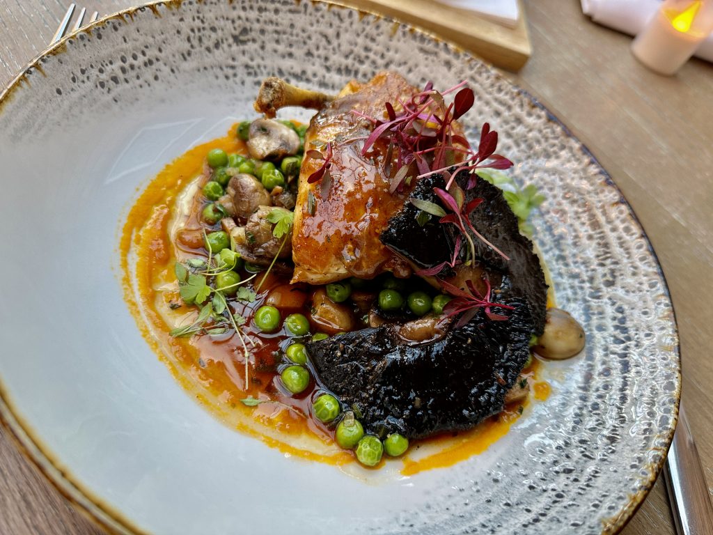 The menu at The Refectory York certainly promises a lot with plenty of compellingly described dishes featuring great product. My friend and I picked up on sweetcorn veloute and pig cheek starters before mains featuring chicken and lamb. The starters were with us in short order and I was straight into the smooth sweetcorn veloute which was paired with savoury relief from brown shrimp, themselves balanced against a sweet miniature brioche. The subtle sweetness of the sweetcorn made this a refreshing and unusual starter to whet the appetite, while the BBQ pork cheek on the other side of the table was a rather bolder proposition. Brown onion and kale threw even more savoury notes at this bold and richly sauced dish. Pig cheek isn’t seen nearly enough and was given full voice here, a satisfying start to any meal.