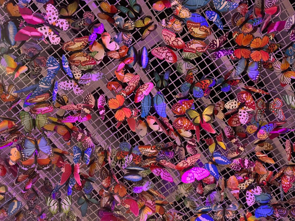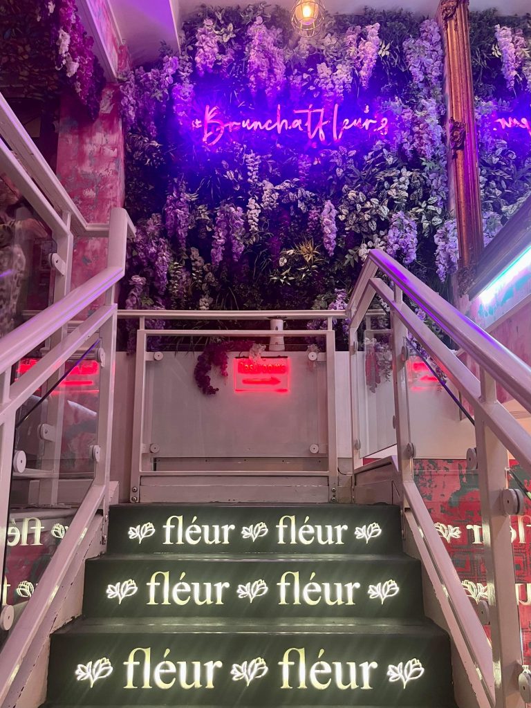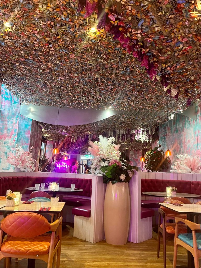 Fleur Leeds is based in The Light so just a short walk from the train station and easy to find for me and Ellen from Leeds Food Tours, who joined me to offer another expert opinion. The Light opened in 2001 and is home to a wide range of retail, hospitality and experiential businesses and entering into Fleur feels like you’re very much in a space with its own character. Clearly a huge amount of effort has gone into making this feel like an escape from real life, and with plants, butterflies, neon and bold decor in abundance, it certainly makes sure that there’re plenty of spots to grab the perfect selfie or snap of your dinner.
