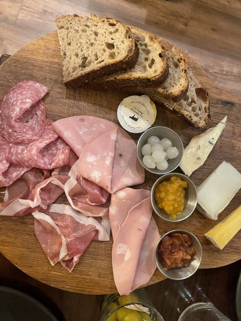 Being greeted with a glass of Cremant from The Languedoc is seldom a bad thing and was a perfect start to this event as I started picking away at olives, and before long our second wine arrived, this time from the Molise region in Italy. As the wines were delivered we received an introduction from one of the staff with a bit of back ground and notes on tasting that was informative without interrupting the flow of the evening. A selection of orange and red wines from Croatia, Australia and South Africa followed that were each distinctive and memorable, perfectly backdropped by the platter that was a treat in its own right with each element being top quality, including a piccalilli that was one of the best I’ve ever encountered and that fantastic bread that’s baked on the premises.
