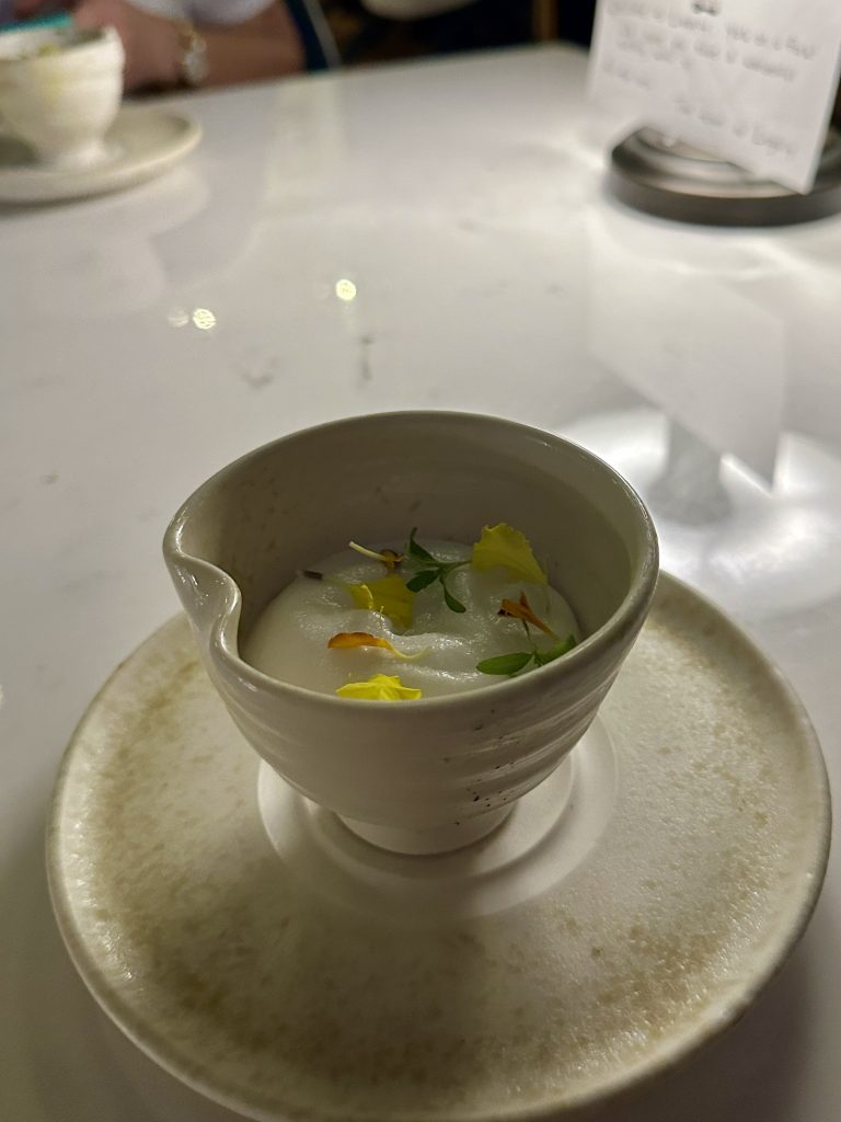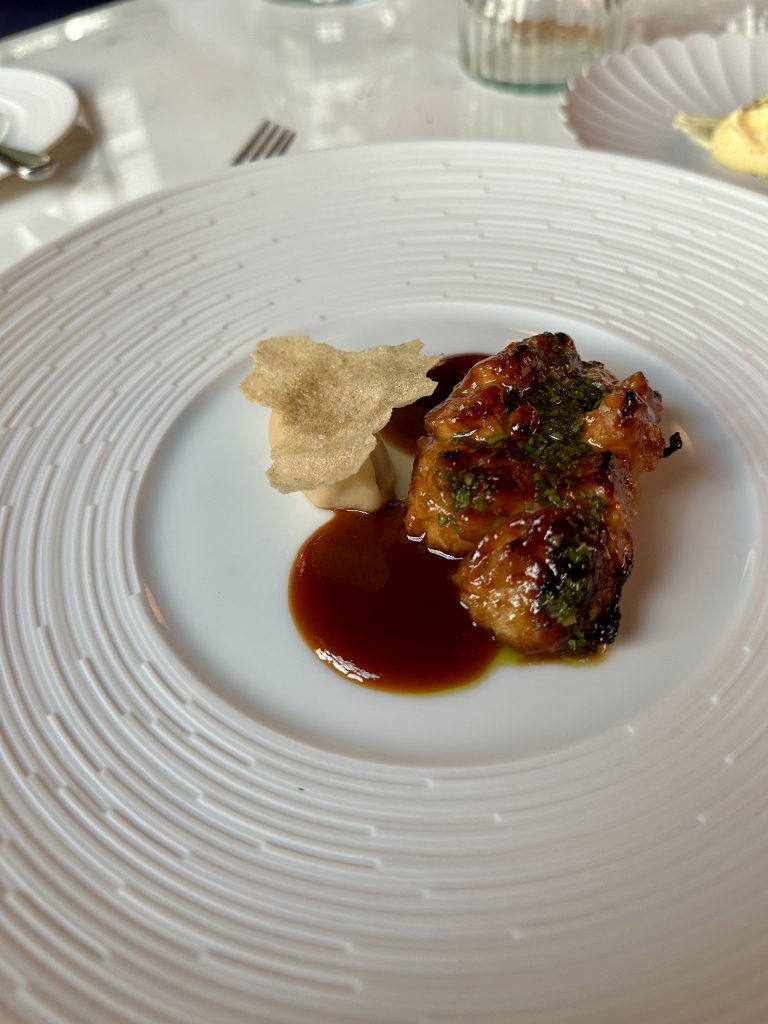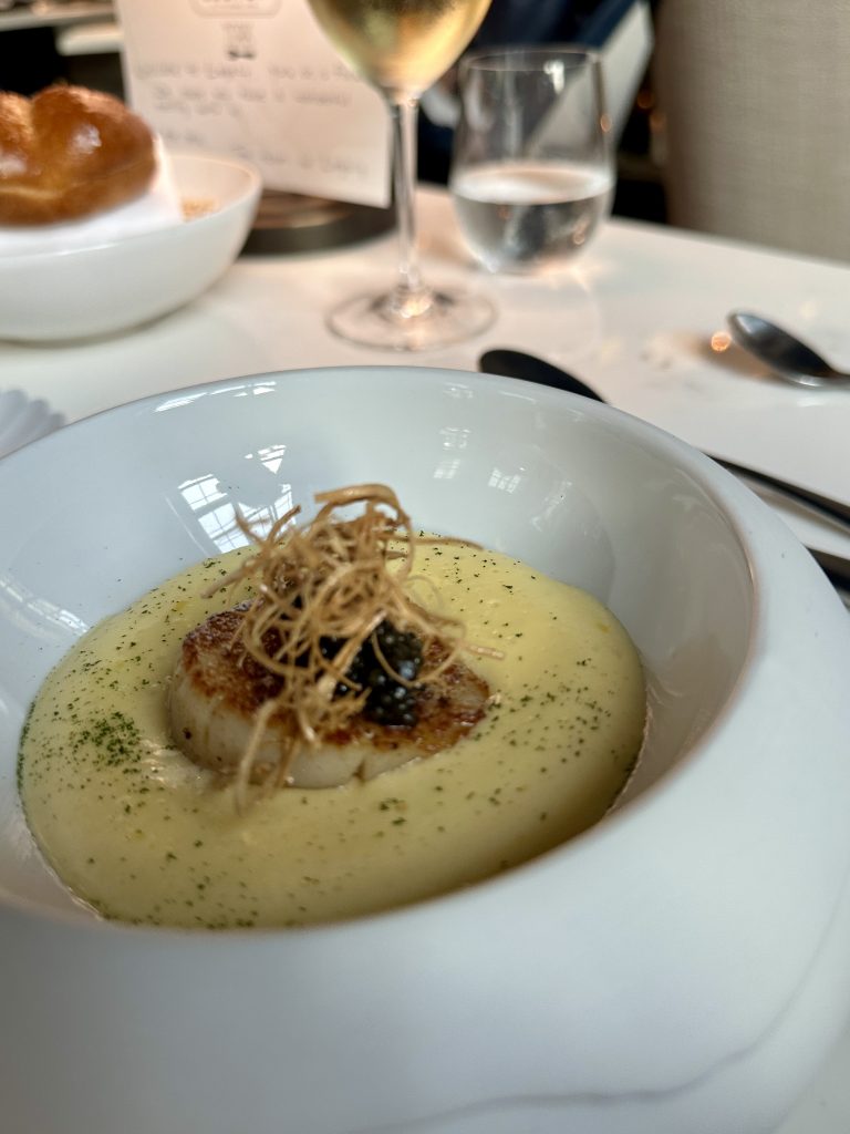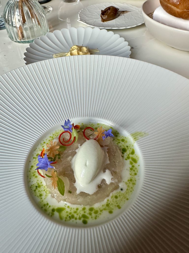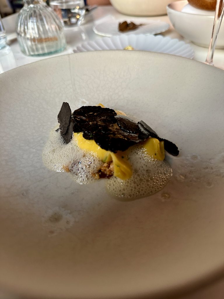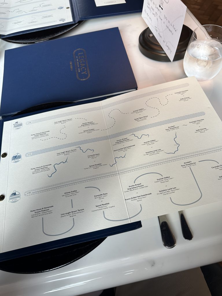 In the decade or so I’ve been doing this, I’ve seen Tasting Menus go from dominant in fine dining through a period of mild unpopularity around 2018 as chefs such as Daniel Clifford voiced concerns at their restricted nature. Post-Covid though, fine dining seems, in the large, to have gently slipped back to this familiar format…perhaps in part as it’s inherently easier to plan if you know in advance what each diner will be served. They can still be a divisive thing though with some taking strongly against them, indeed a recipe book writer whose opinion I respect enormously finds them intimidating and disdainful endeavours. Now though Legacy at The Grand is pitching a twist on the tasting menu v a la carte debate with a hybrid option that lets you tailor the number of courses to your appetite/budget while throwing in a couple of decisions throughout the journey. I gathered up my favourite coffee expert for company and went along on a weeknight to check it out.