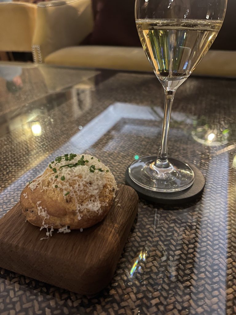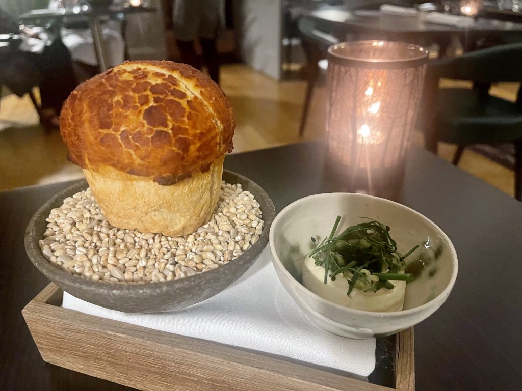 Adam Jackson is a name with which anyone who’s serious about eating out in York is familiar, having been Head Chef at The Black Swan at Oldstead when it was awarded its Michelin Star, before opening his own restaurant. Latterly Adam has undertaken a stint leading the kitchen at The Feversham Arms in Helmsley but his appointment to The Bow Room Grays Court feels like a perfect fit for all concerned. To do a building such as this justice, dinner here was always going to be a high end affair, which is reflected in the price of the tasting menu at £100 per person, with the matched wines demanding a further £65 contribution. Those might sound like big numbers, and in isolation they certainly are, but a little digging shows they stack up with comparative experiences in York which occupy less storied buildings. I also note a number of price rises being signposted by fine dining restaurants in the city too, a situation which doesn’t look like easing any time soon in the current global context.
