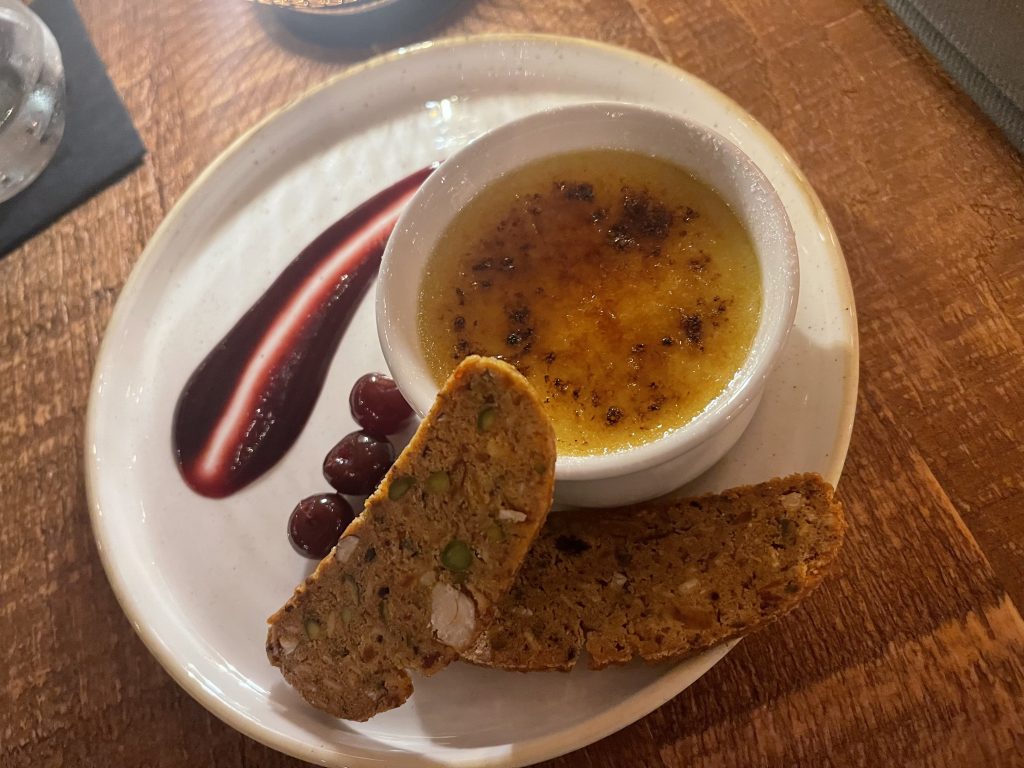 At this point, desserts were all that stood between us and the taxi back to York, cheesecake and creme brulee getting the nod to fill that interval and see us off. I’ve never developed a taste for elaborate desserts so creme brulee generally represents a happy punctuation on which to end a meal, as well as a deceptively easy thing to mess up. This example was infused with tonka bean to make it particularly memorable, an underused ingredient this delivers a hit of slightly almondy, marzipan sweetness with a subtle savoury note. White chocolate cheese cake was similarly well executed and prompted a string of superlatives from its recipient, who I suspect is still raving about it.