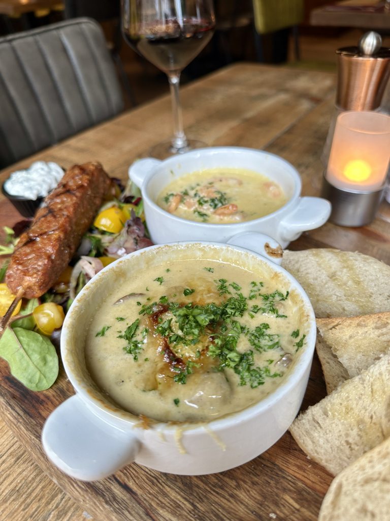 A sharing board of three starters gives plenty of opportunity to make inroads into the starters with lamb kofta, garlic prawns and baked mushrooms forming an appetising trio when served with generous amounts of bread and side salad. I’d happily recommend any of the three that we enjoyed, all generous and rich with no weak spots on the board. The kofta was tender and with a well balanced spicing that didn’t threaten to overwhelm its companions, while the baked mushrooms didn’t skimp on the cheese, which had just started to caramelise on top for an extra punch of flavour. Prawns were given extra appeal from a creamy, white wine and cream sauce with a fresh dusting of parsley lightening things to complete a satisfying start to the meal.