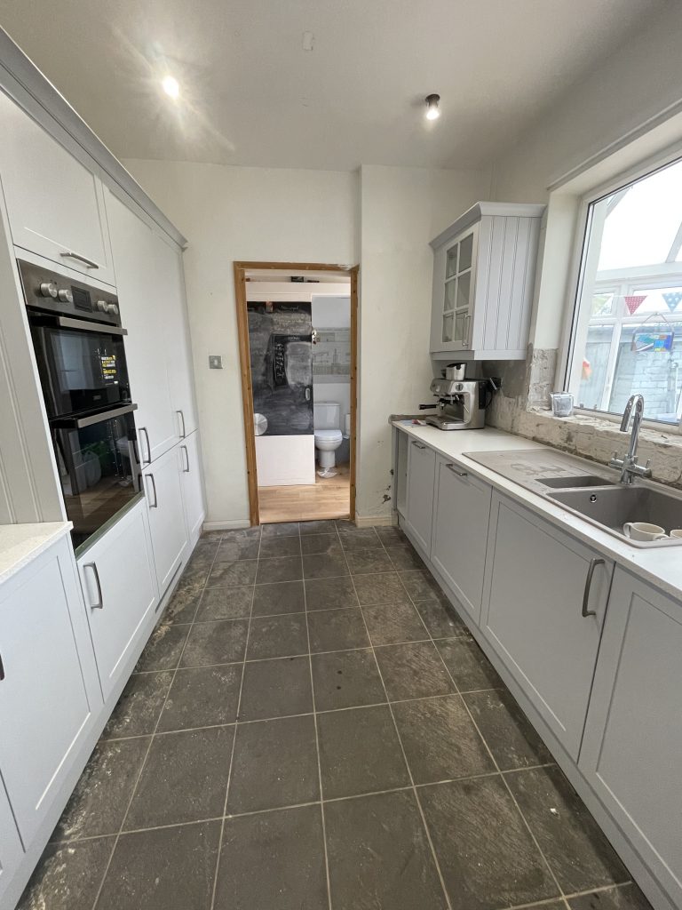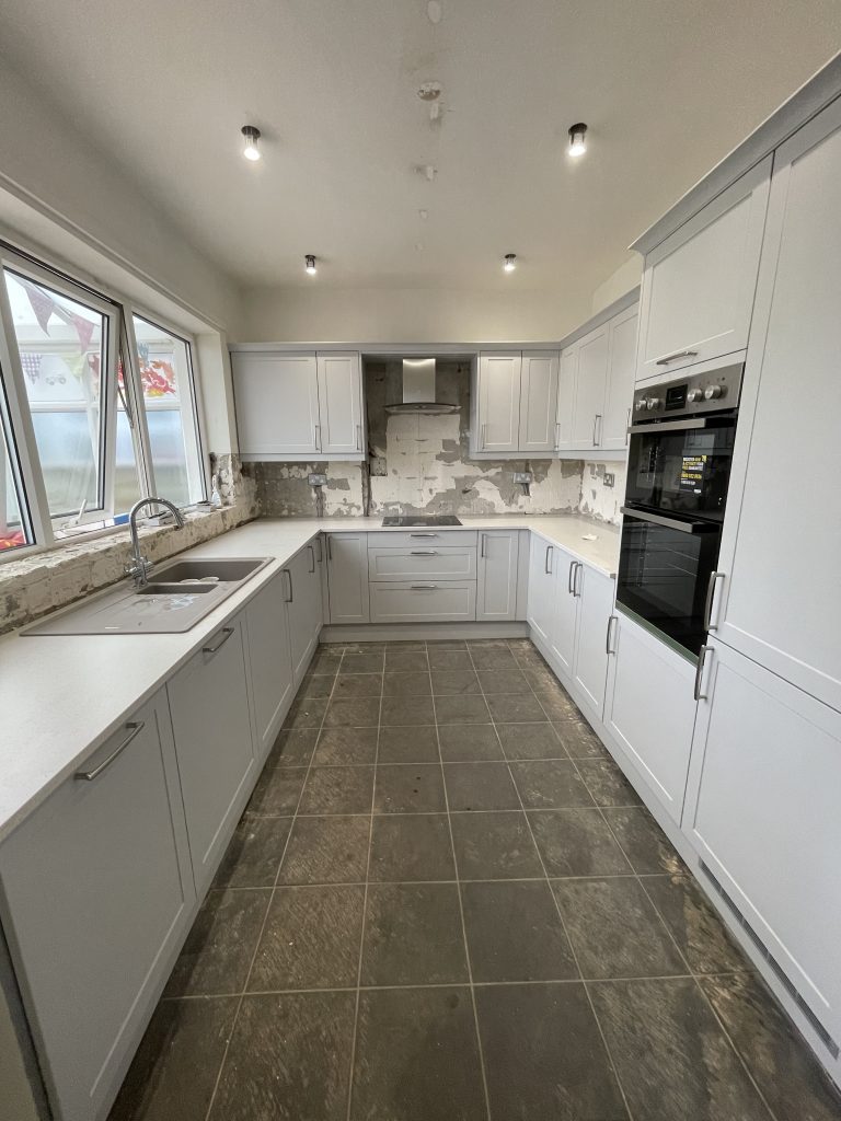 Note. I’ve steered clear of mentioning costs too much in here as it’s an unusually large kitchen for the size of house and there are so many variables. For reference though, it’s pushing £19k including 18 units and fittings, full suite of Zanussi white goods, light fitting replaced with spots, making good previously ropey electrics, cleaning and sealing the floor and a good deal of complex tiling.