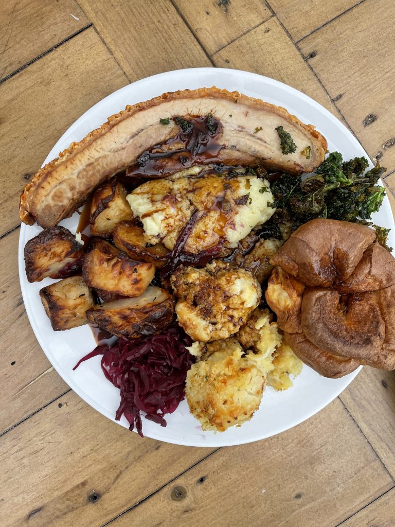 The pork belly from the more usual Sunday roast menu was equally beyond criticism, with quality and quantity in abundance. The central meat element was perfectly tender while retaining an armour of perfectly crunchy crackling to separate it from masses of vegetables and a Yorkshire pud. It’s hard to draw out highlights of the accompaniments but cauliflower cheese shouted loud along with mash in which I picked up a pinch of truffle, roasties bit the right notes of tradition and some fried greens threw a bit of a crunch into the plate. As with the salmon though the final flourish that pushed the dish over the top toward greatness was the sauce, this time a deeply flavoured, almost pearlescant gravy chocked with presence and flavour. As with the fish dish, the quality of the sauce inflicted the indignity of plate licking on one of us. This was a uniformly superb meal with every element over achieving and going beyond expectations. I may not have been totally sure what was waiting for me in Stillington but I know what to expect when I pay a return visit to enjoy eating in: intelligently presented dishes that have been developed to their full potential to pack in improbable amounts of flavour. The Bay Tree Stillington is set for a very bright future as dining in becomes a viable option again.