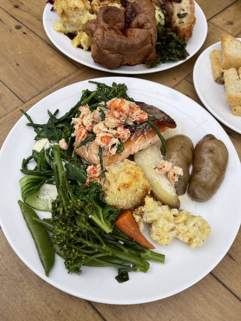 Main courses consisted of roasted pork belly to represent the more usual Sunday offering along with a seared salmon fillet from the Mother’s Day menu that moved away from the more sterotypical Sunday lunch offerings. The salmon came with potatoes and sea veg to form a plate that was given much further life by a crayfish and wine sauce, which elevated things to a truly memorable level. Salmon and potato were clearly excellent produce that had been given the chance to reach full potential but a good sauce can really bring a dish to a new level, something particular true of this dish. The large amount of crayfish thrown into the mix thanks to that sauce really took this dish to quite significant feelings of luxury, really setting out a marker for quality.
