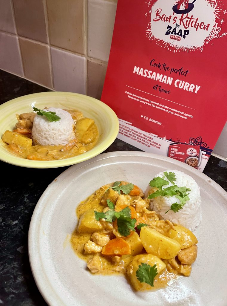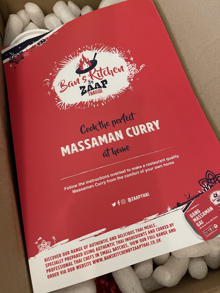 My experiences of the Zaap Thai branch in York have been very good but the standard of the ready meals really impressed me, particularly given the abbreviated timeframe in which they were introduced, so their entry into the recipe box market was intriguing. The Ban’s Kitchen recipe kit boxes are each designed to offer a particular Thai dish and clock in between £19 and £26 plus shipping. I plumped for the Massaman kit and looked forward to getting cooking. The kit includes the majority of the fresh ingredients you need, though you need to add your own protein, garnishes, stock and rice. It’s noteworthy that the quantity of the dry ingredients delivered are far, far in excess of what’s needed for one meal though, which comfortably compensates for the slightly curious absence of rice.