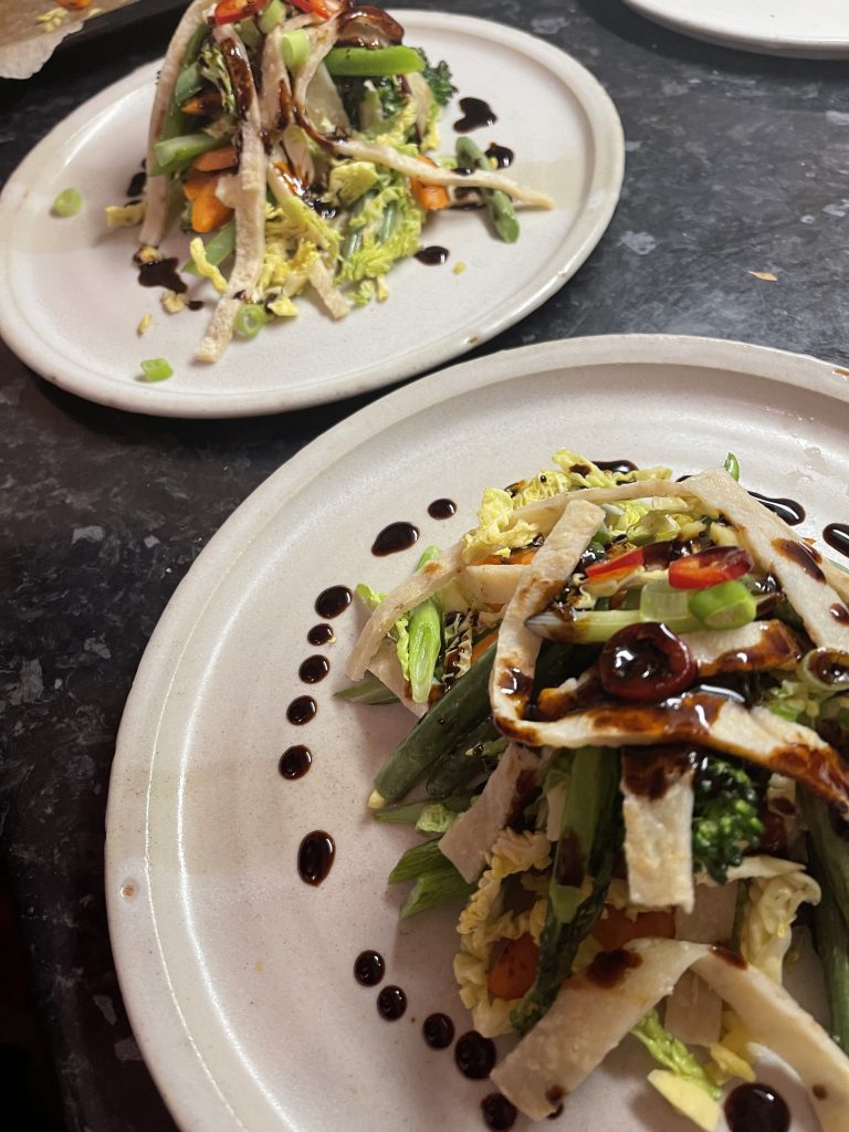 The second of the lessons we booked promised a “Stir Fry”, though obviously at this point we had little idea of what to expect. As it turned out, this was a marginally more conventional dish in as much as it did feature vegetables that had been fried, though in a pan rather than a wok to acknowledge the inability of a domestic hob to faithfully replicate that technique. Beyond that things leapt a little sideways into amusing/delicious deviations that made a surprising substitution for the noodles and gave rice a place on the plate….using Rice Krispies as a base. Much as I’d love to say more, it feels little cruel to ruin the surprise for those yet to book onto this one, that’s still just about available.