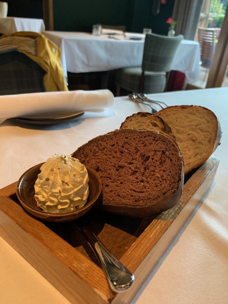 Harome is a picturesque village just a couple of miles down the road from Helmsley that is lucky enough to not only be home to The Star Inn but also The Pheasant, which I was lucky enough to be invited along to only a few weeks ago, and it’s also possible to book packages that include meals across both of these superb restaurants through The Pheasant’s website. The Star is a strikingly quaint thatched building which seems to exude a welcoming atmosphere as you arrive and guided to a table, the masks and sanitisers failing to puncture the welcome. We opted for the a la carte menu rather than tasting menu, augmenting with a few extra treats to reinforce the sense of occasion a day without a nappy brings at the moment.