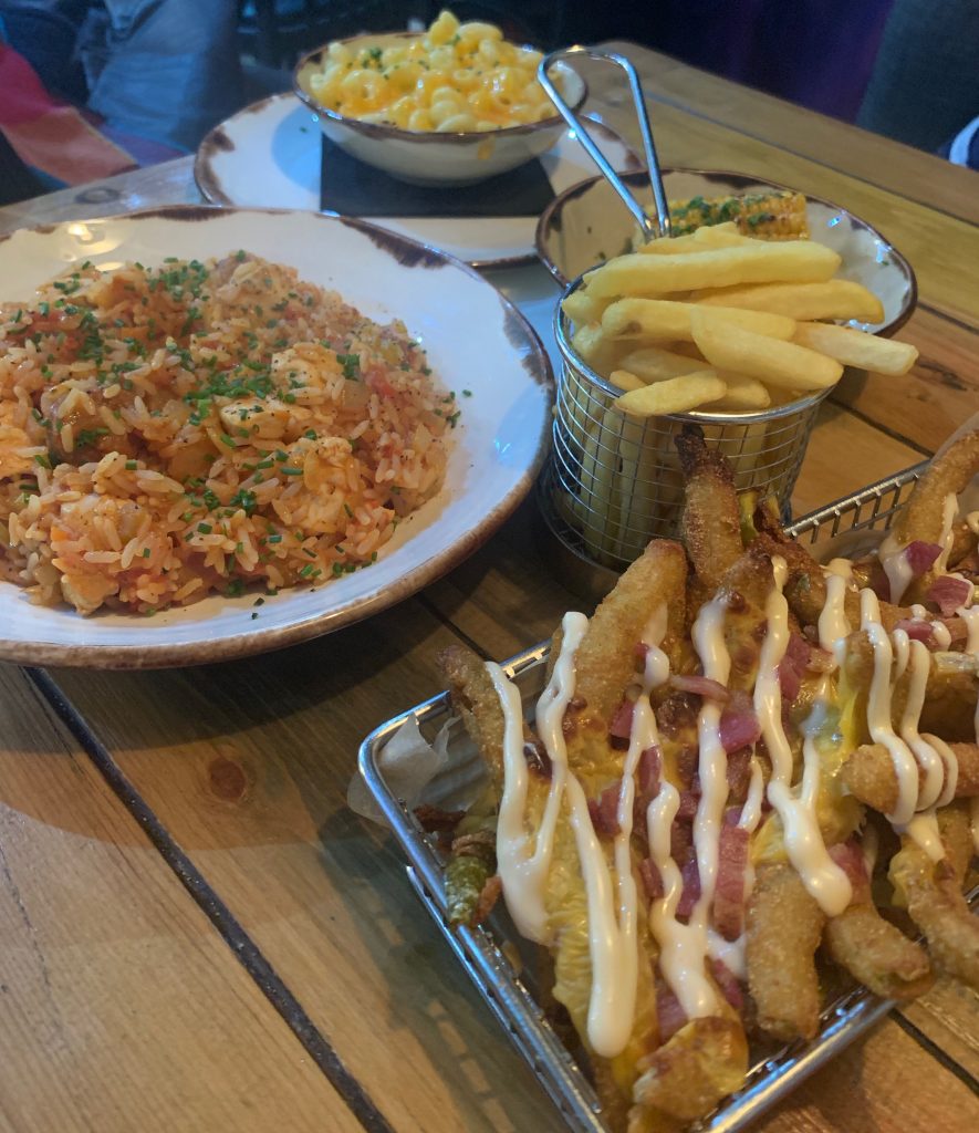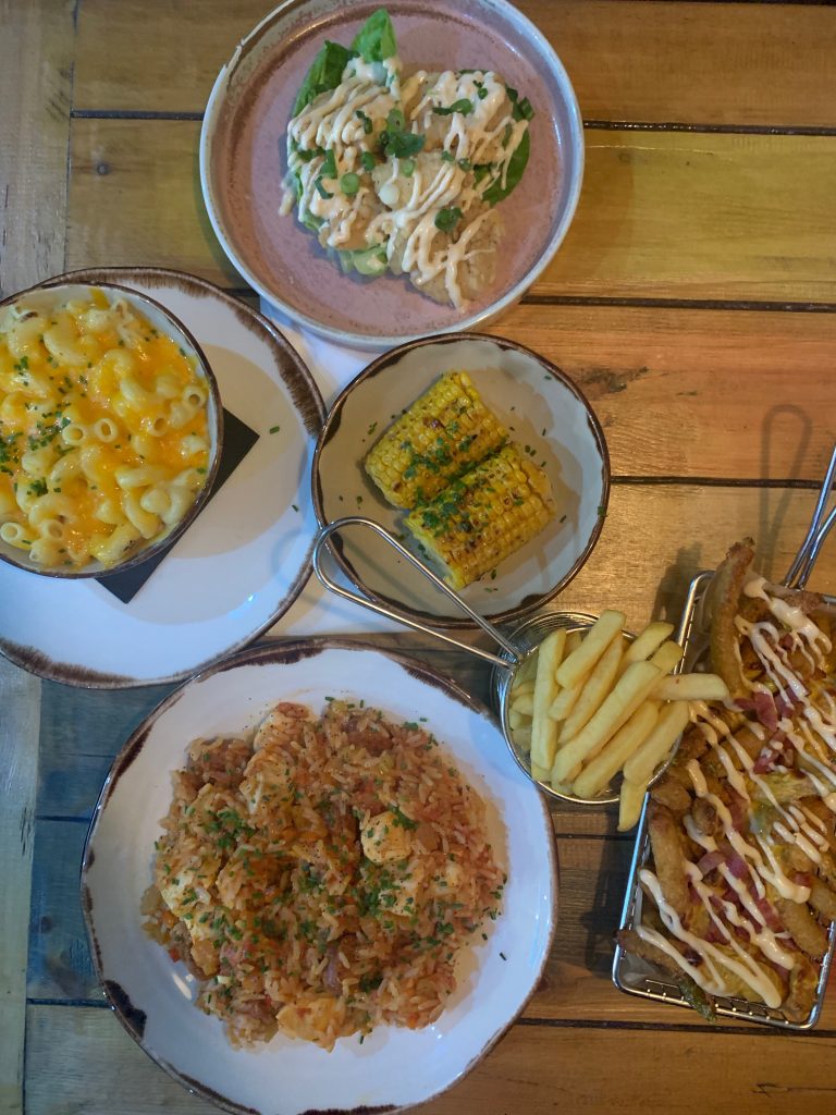 We made sure to order a portion of fries for us to graze on and with which to distract Baby Fork, adding to that loaded deep fried pickles, buttermilk fried shrimp, sweetcorn, mac cheese and chicken and sausage jambalaya to round out a meal.
