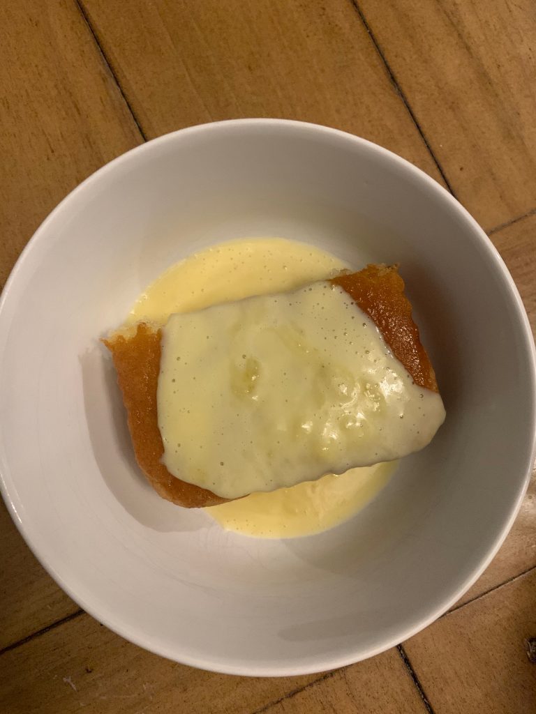 Day two started with a terrine of ham hock accented by Oldstead Marrow Relish, a condiment that I confirm goes with pretty much anything you can throw at it after I picked up a jar of it at last year’s York Food Festival. I felt like the terrine needed a bit of texture to draw it out so I knocked up a couple of crisped toasts to go with it, thankfully not drawing anything from the balance of the terrine that packed in herbs along with the meat. The main course was ox cheek and short rib cottage pie with smoked butter mash and bone marrow bread crumbs that mixed all those elements into a predictable depths of flavour and surprising subtlety, all the different flavours and elements present and correct without overwhelming one another. We ended on an elderflower and citrus drizzle cake with duck egg custard that was sweet without grabbing too hard at my teeth or overwhelming anything that had gone before, a happy few mouthfuls to finish the evening with fresh custard that’s all too rare in this house.