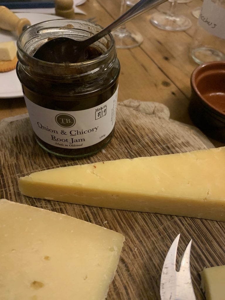 It’s relatively easy to find time for indulgence in this lock down but little in the way of a sense of occasion to match, so I was very happy to make this an evening staring at the laptop with a more productive outcome than the usual aimless browsing. I lined up some cured meats, olives, crackers and a Tommy Banks chicory & onion jam to go with the cheeses and wines, leaving us ready to join the webcast in anticipation of getting stuck into our evening’s treats. I must confess that, while compulsive, Ritz crackers perhaps weren’t the most appropriate accompaniment to such good produce but that’s all I could find in the cupboard and I didn’t want to push the definition of ‘essential’ far enough to justify a trip for crackers.