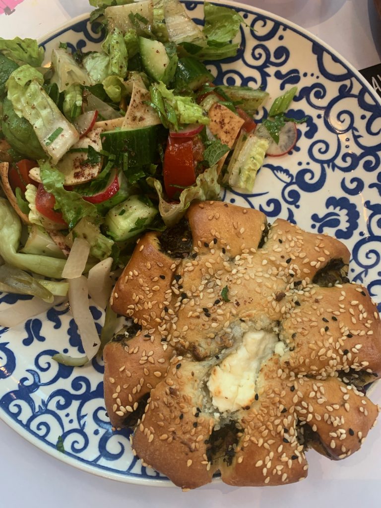 Comptoir Libanais Leedsremains a bright and cheerful presence under the Everyman Cinema in Leeds’ Trinity Centre. On our last visit, there was a slightly incongruous soundtrack leaking into the restaurant from the cinema, film soundtracks overwhelming the vibe a little. When we arrived I noted that was no longer the case as we were quickly seated, not taking much time to order everything from the “Vegan Flavours of the Month” menu. This consisted of three dishes that weighed in around £20 to enjoy the triumvirate. We chose to supplement these with a spinach fatayer to make sure we had plenty for the two of us and that Baby Fork would have ample opportunity to pick at our meals. In retrospect, this isn’t the greatest editorial decision I’ve ever made, having already enjoyed this dish on our previous visit. That said, the repeat order speaks of how much we enjoyed it.