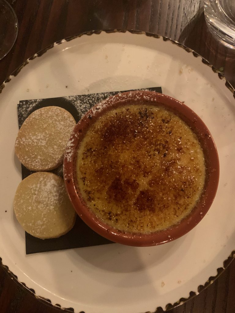 Having already given our appetites a good work out, we opted to finish by sharing a creme brûlée. While not as comment worthy as the rest of the food we enjoyed, it worked just fine as an end point to the experience with a glass of dessert wine and was a happy example of the dish.