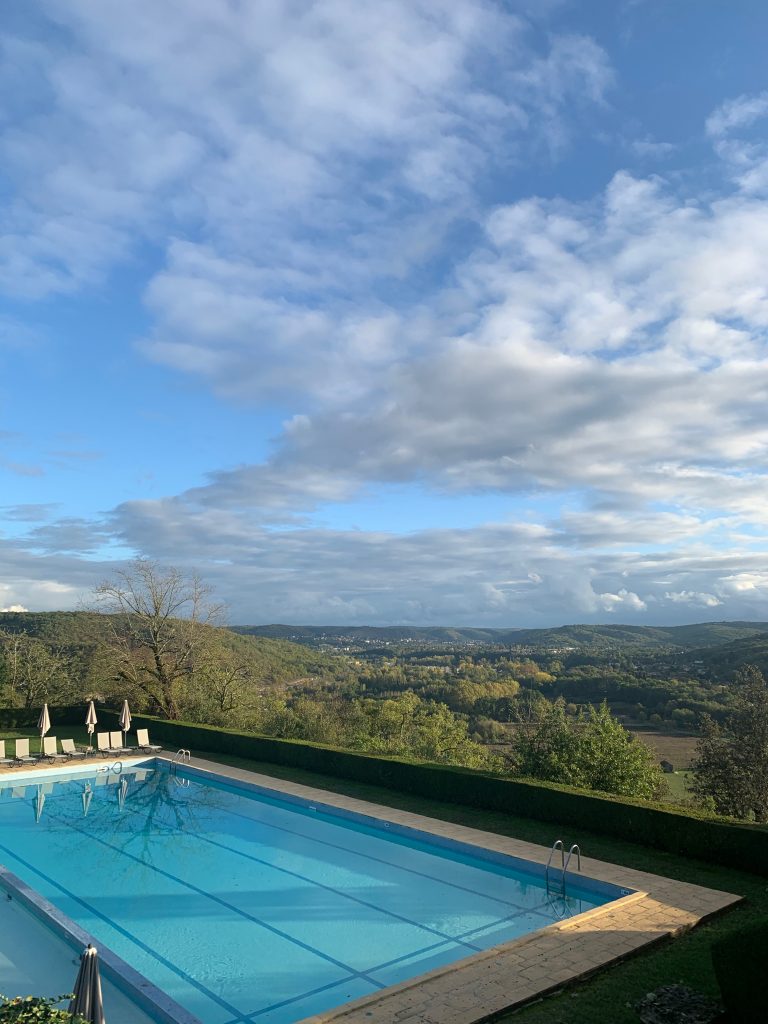 Having been appropriately refreshed, I took the time to explore a little more thoroughly and grab a few pictures of the grounds and exterior of the building. I enjoyed taking in details such as the hatch through which grapes make their way to the subterranean winery and the swimming pool with stunning views. Sadly it was far too cold to make use of that in November, but would make a peerless summer hang out with a glass of the sparkling Bellefleur from associated winery Chateau de Haute-Serre.