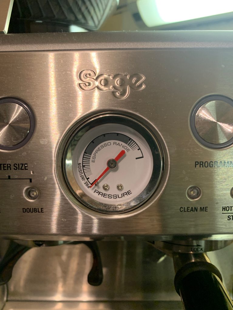 The machine itself is extremely handsome in stainless steel and sits relatively unobtrusively in the corner of our moderately sized kitchen. Thankfully its height and my measuring skills tallied to ensure it had a few millimetres of headroom under the wall mounted cupboard I’d intended it to be placed. Getting set up was a doddle, consisting of little more than topping up the bean hopper, filling the water tank and jabbing a few buttons to get a hot espresso shot. This is where the snag comes though. The descriptor bean-to-cup implies that you can mindlessly dump beans in one end, prod a button and be rewarded with a perfect cup of your chosen coffee, but that isn’t really true. Having read up on this machine, I was aware that this would be the case and ready to undertake some significant fiddling to get the results I wanted. I started by doing nothing more than throwing a bag of supermarket beans into it and sticking to the factory settings then using the built in pressure gauge to judge if the timing, weighing and extraction was balancing ok. Suffice to say, the results were mixed, being acceptable but not what one would expect from a new investment approaching half a thousand pounds.