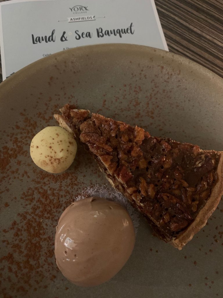The meal finished with a dark chocolate maple pecan pie with a white chocolate truffle and milk chocolate ice cream. I’ve had some unusual ice creams in recent years that have been of varying attractiveness, but this was a refreshing, light example that tempered the rich tart well.