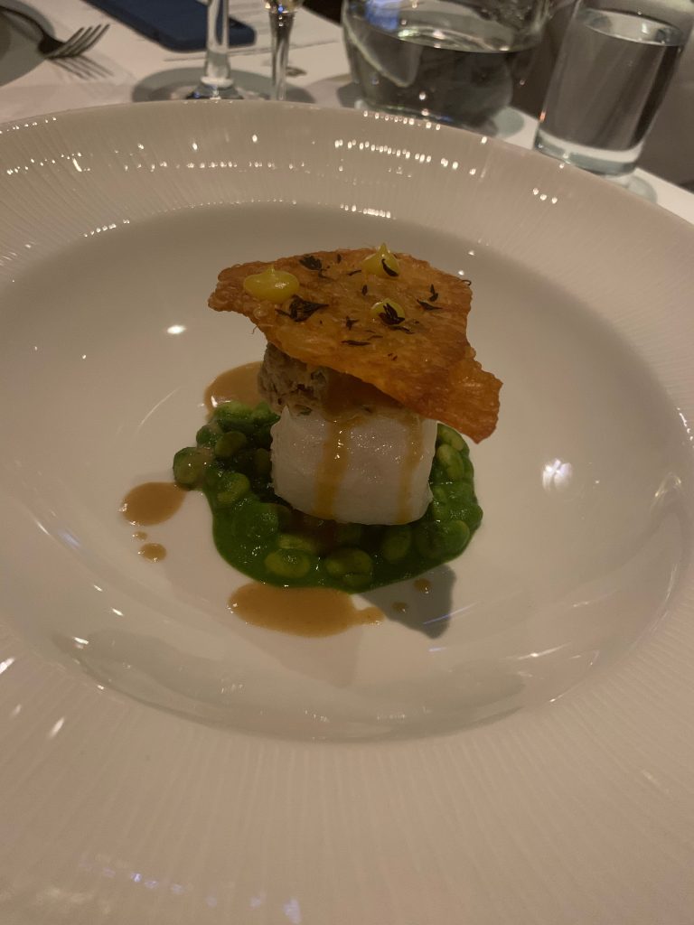 We were quickly directed to our table and after a discrete interval to grab drinks orders, Matt and the restaurant manager braved some public speaking to introduce the evening and our first course, a tart of white crab, cauliflower and Spanish blood sausage. Featuring some of my favourite ingredients, it was hardly a surprise to regret there wasn’t more of this dish, which judged perfectly the amount of the blood sausage, reminiscent of black pudding, that was needed to bring out the sweetness of the crab.
