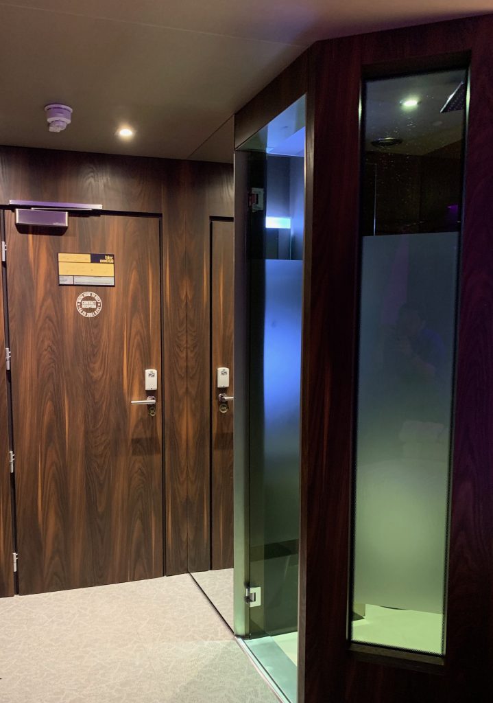 There are a variety of room and suite options that can offer the opportunity to have a runway view or more space but I was going for the most pure representation of the Bloc experience, foregoing luxuries such as windows and natural light. The basic room was certainly small and didn’t have much in the way of amenity but was clean and comfortable, a touch screen by the bed giving you control over lights and temperature. To maximise space, the bathroom was configured as a wetroom, some frosted glass allowing some light in from the main space. Everything functioned as it should, but I’ve yet to see a wet room that hasn’t resulted in wet socks at some point.