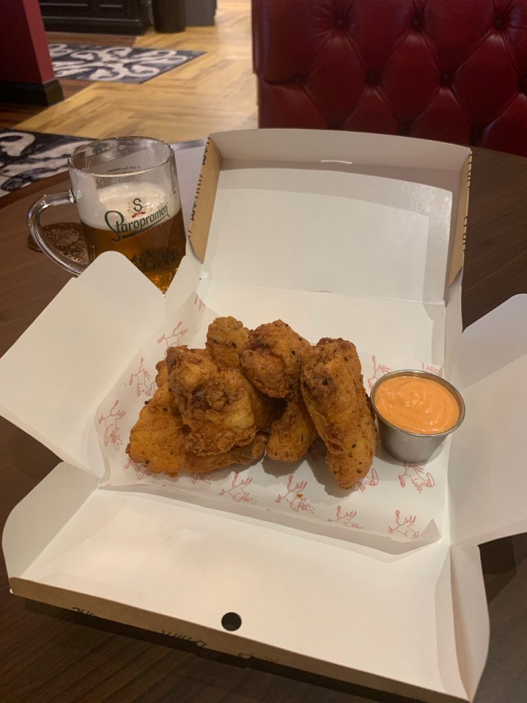 With my focus shifting to food, I took a look at the four street food menus in which I was interested and decided to start off with the offering from Absurd Bird. This menu is an offshoot of the fried chicken chain and offers wings, burgers and buckets of fried food apt to soak up a few beers in front of that previously mentioned big screen. My challenge for the afternoon was to sample something representative from each menu, so I kicked off with some fried wings that were served in a box neatly designed to recline into a plate of sorts. It’s no real criticism to say that I’ve had more refined fried chicken elsewhere, but this was a cracking example of the breed, not too greasy but still messy enough to make sure you leave fingerprints on everything for some time.
