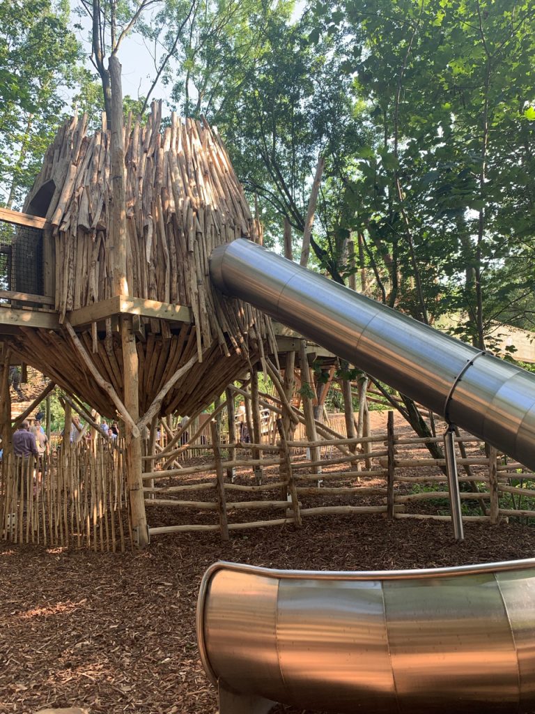 Skelf Island has just opened (conveniently timed for the summer holiday) near to the existing playground and really ups the game. Accessed via an elevated rope bridge (or a lower level walkway for the less adventurous), the new development that brings Skelf Island into use for the public is truly impressive, bringing together a great variety of tunnels, slides and bridges along with loads of opportunity to climb and scramble around. The zip wire is bound to prove popular too.