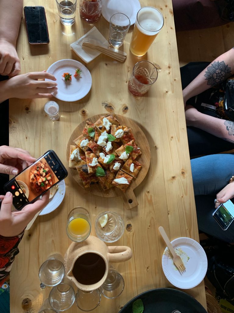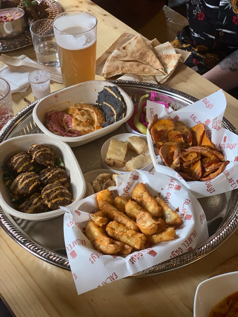 By now the table was well into the swing of things and ready to receive The Falafel Guys who are offering sharing platters featuring falafel, halloumi fries, sweet potato chips, hummus, mixed pickles, bread & baklava. Falafel is so often a sphere of dry powdery disappointment but no such worries here and I can certainly get on board with the idea of sweet potato and halloumi fries for breakfast.