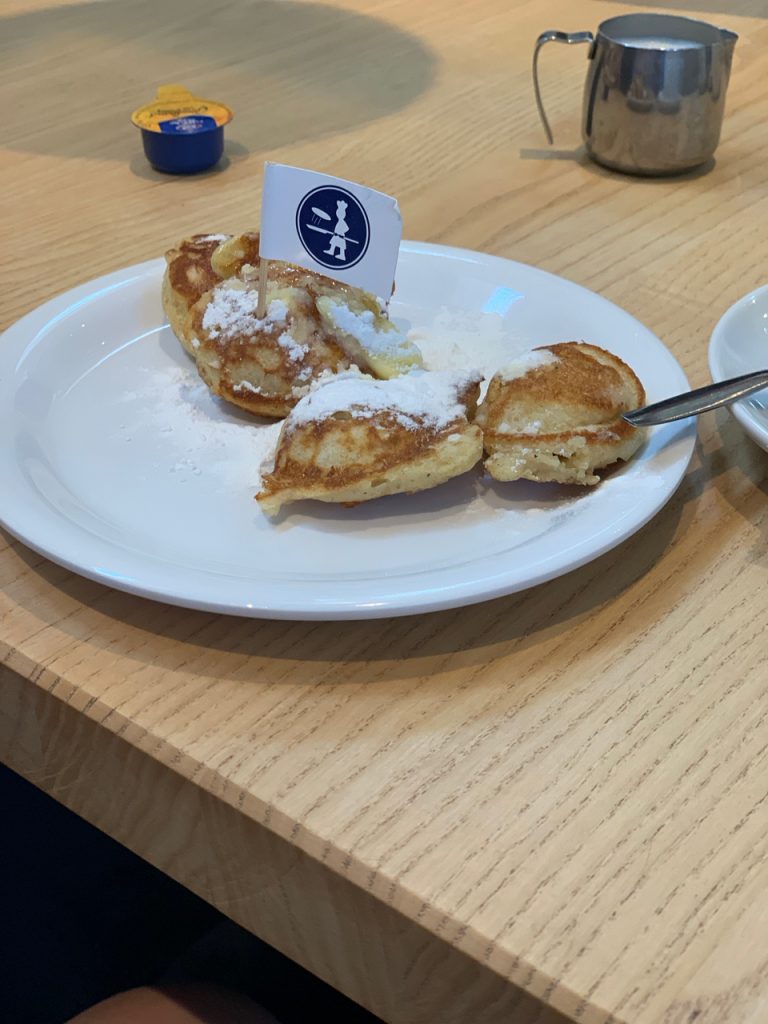 Having been kept awake a certain amount by Baby Fork as she got used to new surroundings, we were grateful that the first stop included coffee. While we topped up our caffeine levels and snacked on sweet, caramel stroopwaffel, the chef at this venue was preparing Poffertjes for us. These sweet, fluffy pancakes are traditional and quickly devoured by the group who enjoyed the butter and icing sugar. After a quick demo of how these are cooked, we were on the move again.
