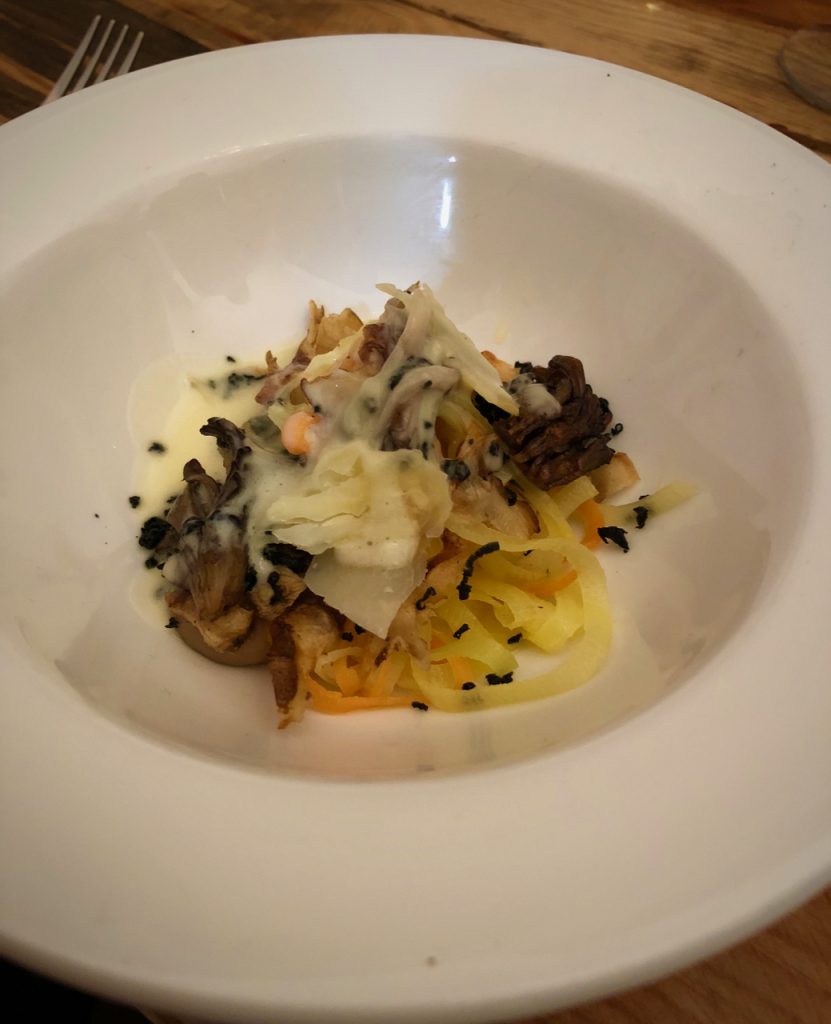 Radix Hen of the woods, poacher & root vegetable tagliatelle
