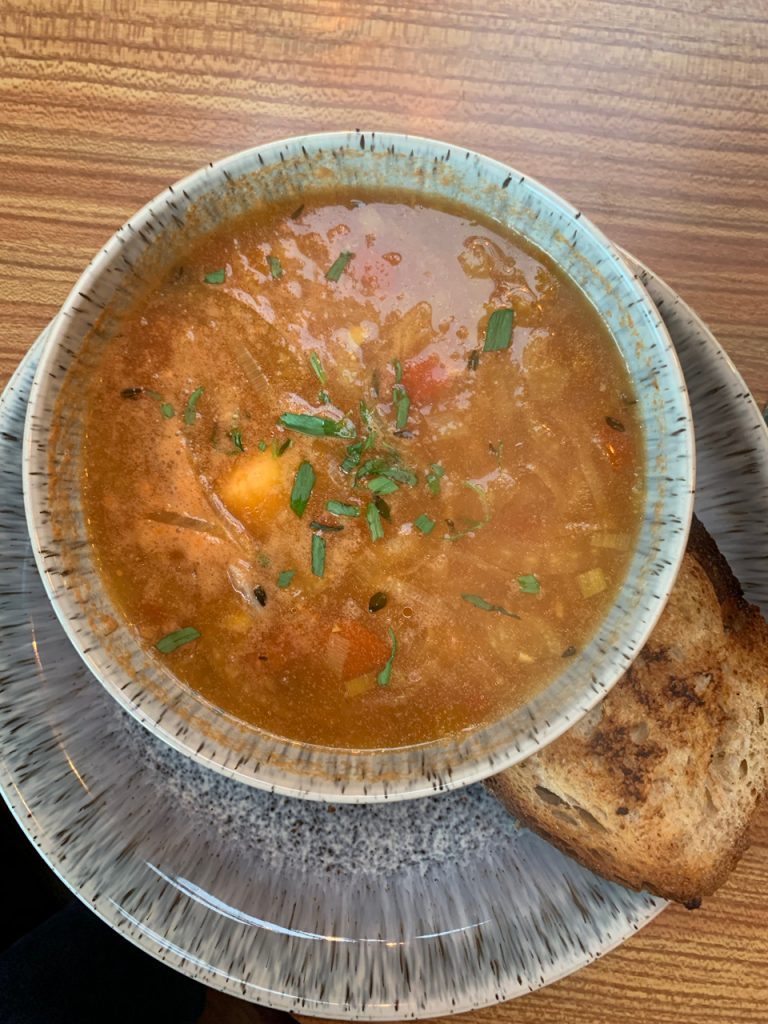 We decided to go for something lighter next and ordered a selection of sashimi from Edo that was as beautifully fresh as it needs to be; the scallop in particular being delightful (£15). The other side of the table opted for a selection of small plates from the same outlet that included duck gyoza, Japanese fried chicken and octopus dumplings which my stolen bites served to confirm their positivity (3 dishes for £12) . Finally we hit Fin&Bone for a Bouillabaisse which had a decent punch of flavour but could have been a bit more generous with the seafood to hit the same heights of the dishes we’d enjoyed so far.