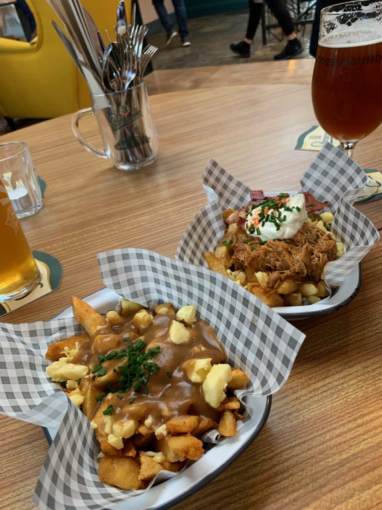 We settled upstairs, bagging a sofa and a high chair to base ourselves in before exploring the menus. Predictably there’s too much to work through in one day here but I enjoyed living vicariously through the sights and smells as I made my way around. A couple of street food chefs in York had suggested the poutine so I started with Gravy Train’s “Montreal” dish. Peculiar to Cutlery Works compared to other food halls I’ve visited, there’s table service, so I pointed out our table on a plan and returned to the group, where the food appeared quickly enough. The suggestion turned out to be spot on: really well prepared fries paired with curd and drenched in a deeply flavoured gravy. This was a deeply satisfying way to spend £6 while my companions’ similar dish chucked bbq chicken into the mix for another couple of pounds.