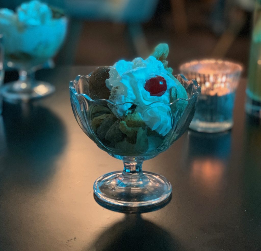 Last up was another dish that’s likely to split audiences, the Dough Ice Cream Sundae.This one is described as “f**king mental” and is just as chaotic as the hangover cone that it shares themes with. I couldn’t keep track of the number of elements in this one, a whole bunch of indulgences in one glass featuring doughnut profiterole and ice cream…with a (literal) cherry on top.