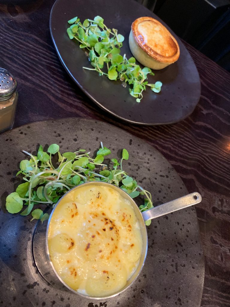 I was just about able to stretch my appetite to try all of the Whippet Inn Pies on offer, enjoying them all without finding a clear winner. On balance my favourite was probably the most traditional filling of braised beef that came further alive with a touch of blue cheese. The smoked fish pie showed pleasant restraint and didn’t allow strong smoky flavours to dominate, while the balance of chorizo and chicken was happy to play amongst itself with peppers. Mac and cheese filled pie disappointed a little, needing a stronger flavour to allow the slow cooked brisket to make a proper showing, but cheese, beef and pastry can only ever be the slightest disappointment when on the same plate. I’ve tried vegan options at the Whippet before so it was thankfully predictable to find the vegetarian pie just as satisfying as the meat-based options with subtle satay sauce bringing the best out of cauliflower, chickpea and aubergine.