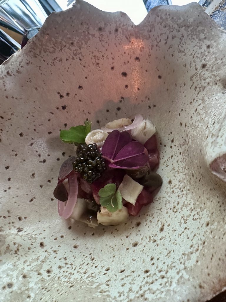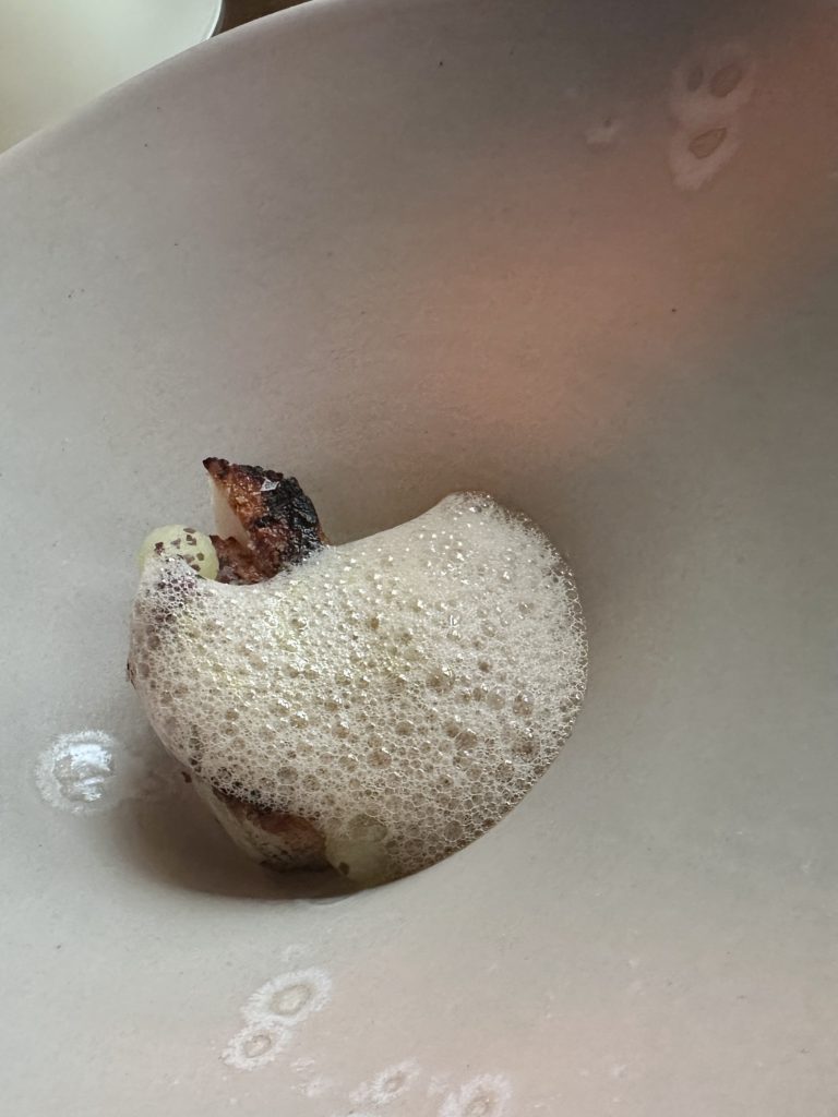 Steak tartare came and said its hellos next, using caviar and smoked eel to accent the perfectly uniform dice of meat as well as a small scattering of peppery nasturtium. I’m not sure what it says about me that I’m drawn to raw meat in such a way but this example will stay with me for some time. Barbecue scallop was next on stage showcasing a heady char of caramelisation against buttery scallop sweetness, apple notes and earthy cauliflower. After the tartare, this was another open goal confidently taken!