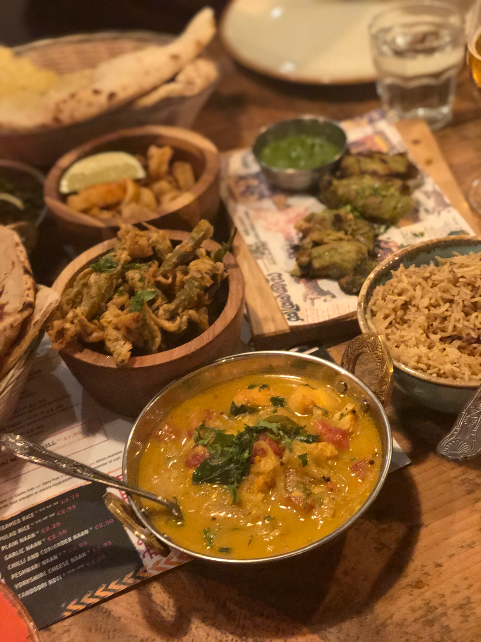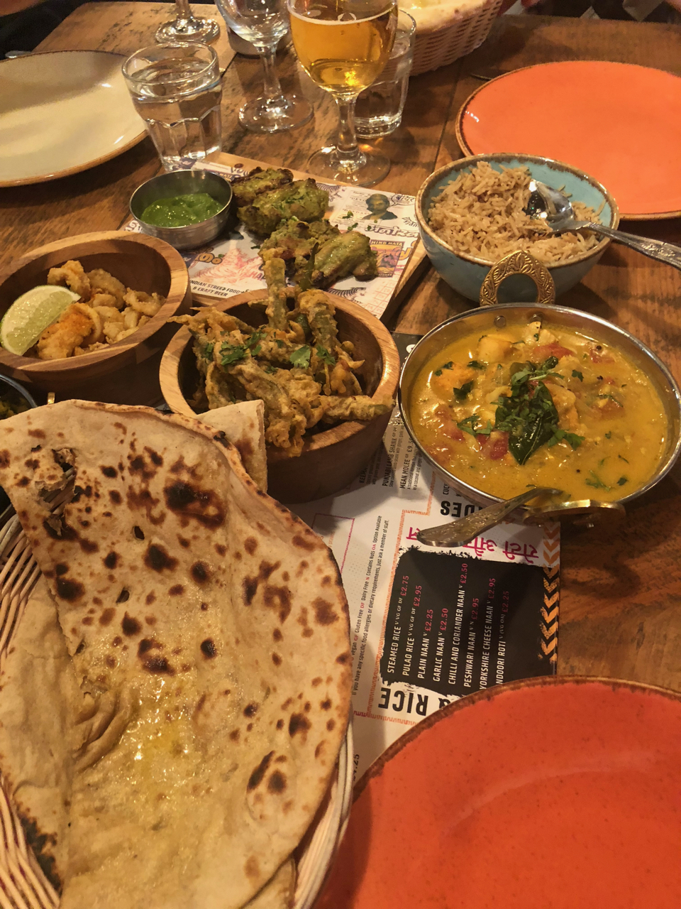From the curry we plumped for the Mean Molee, a gently warming fish curry with a coconut and ginger sauce. This one drew unanimous praise as we competed to get our hands on it. To soak up all this we grabbed some pilau rice, roti, a Yorkshire cheese naan and a Kachumber salad to give a lighter element to the feasting. All the sides were up to snuff. I’d have liked a more aggressive cheese taste in the naan but that’s splitting hairs as everything soaked up the spice perfectly. The table also commented on how the curry was lacking the layer of grease that sometimes makes it hard to digest anglicised curry.