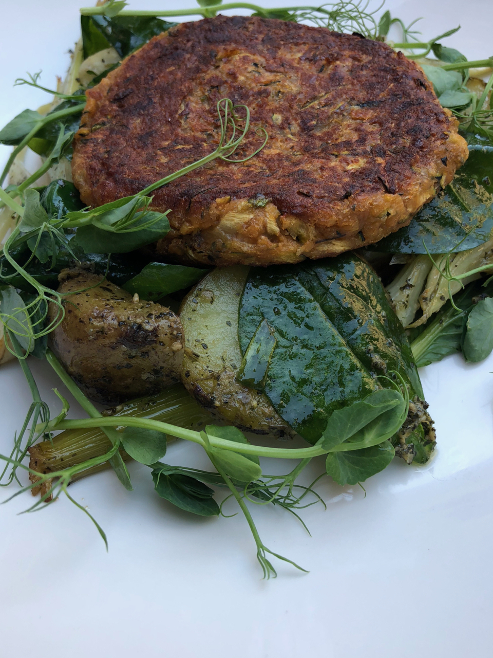 The new range of vegan dishes includes a trio of mains, and despite there being only two of us we pushed forward to make sure we sampled the full range. First up was a roast aubergine and tahini wrap served with charred lettuce hearts, sesame, red chilli and seaweed presented a couple of ways. The aubergine had tremendous depth of flavour and was one of my favourite elements of the meal, working brilliantly with the tahini shot through the aubergine flesh. The pieces crispy fried seaweed on the wrap gave a strong savoury element to the dish that continued into the somewhat strong seaweed broth that would have been in danger of overwhelming the plate without some restraint. Next up was a courgette and chickpea hash that was served as a fried patty over Jersey Royals along with confit fennel. The bubble n’ squeak type main element was a wetter mixture than I expected but absolutely delicious and a superb accompaniment to the simply prepared potatoes. The final main we tried was a cauliflower steak spiced with ras al hanout under which had been scattered pomegranate and apricot. Cauliflower “couscous” and garlic roasted beetroot “fries” occupied the rest of the plate, the beetroot being particularly compelling while the fruit and spice helped each other out admirably.