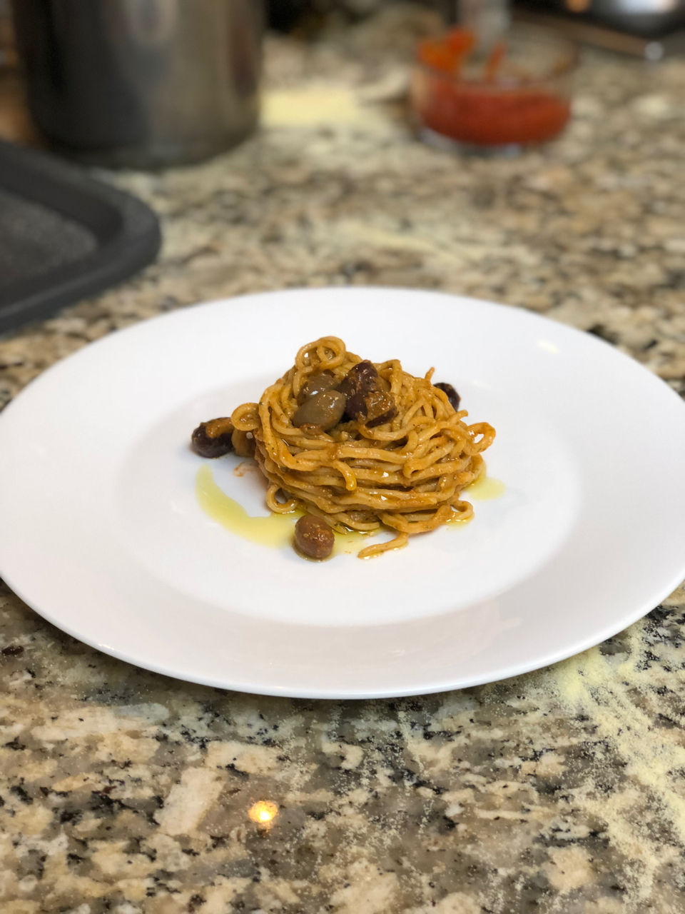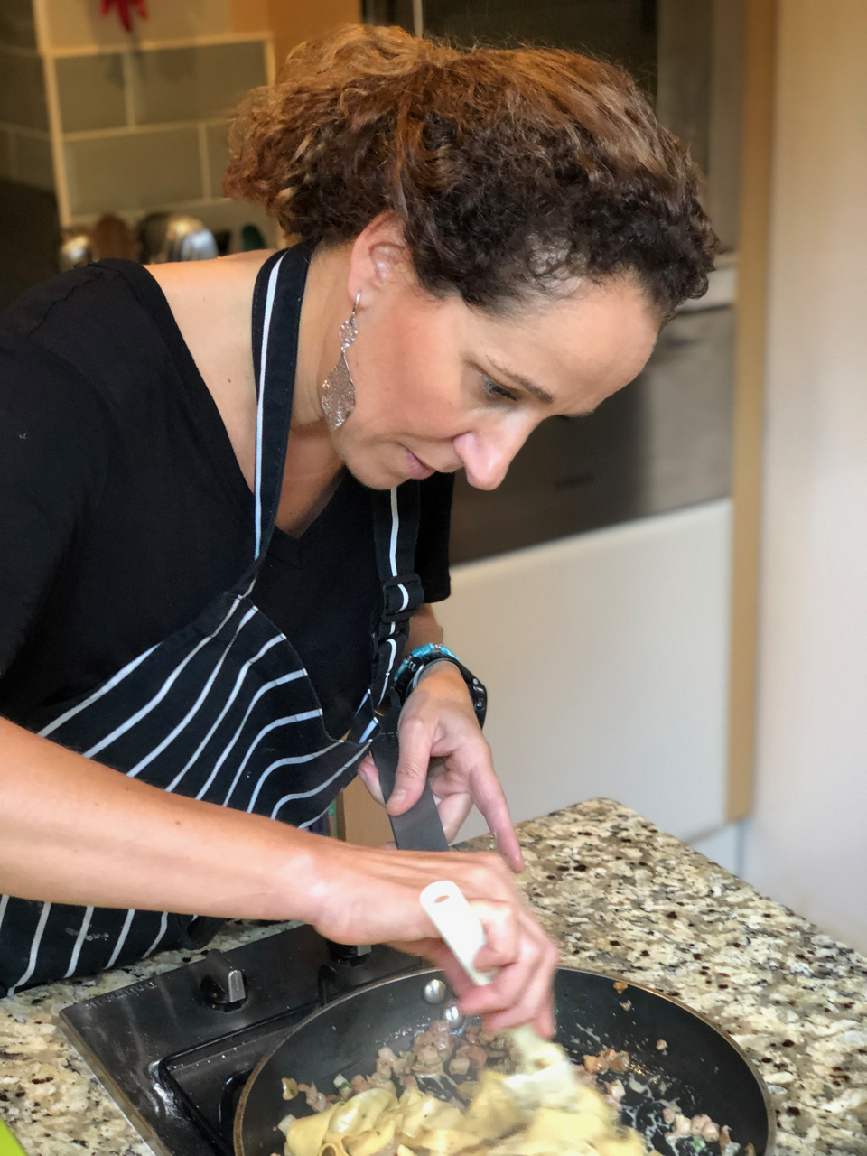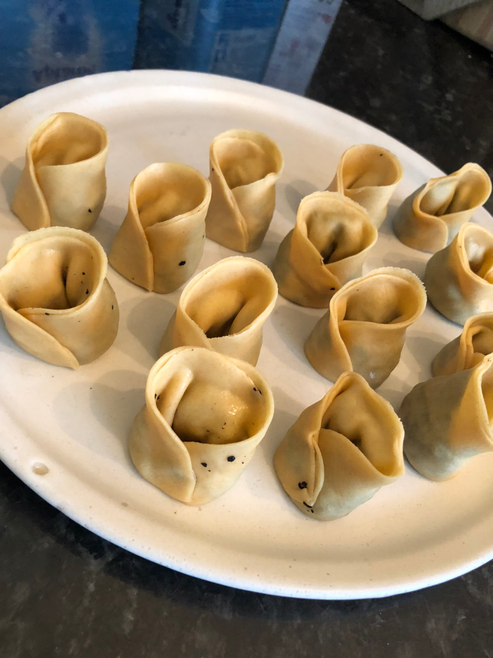 Our efforts quickly yielded lustrous ribbons of pasta that Sara quickly knocked up a mushroom sauce for before expertly twisting the sauce and pasta together into a delightful tower that we wasted no time in getting stuck into. Spaghetti in a simple olive oil sauce with olives was next up for us to quickly dispatch before fiddling our way through constructing ravioli and tortellini. This was a task that was reduced to greater simplicity than one might expect, requiring only a few neat folds to end up with some delightful parcels that required only a few short minutes in water.