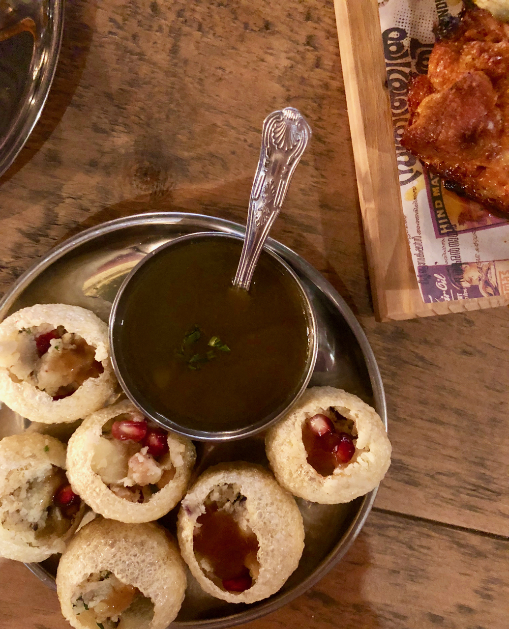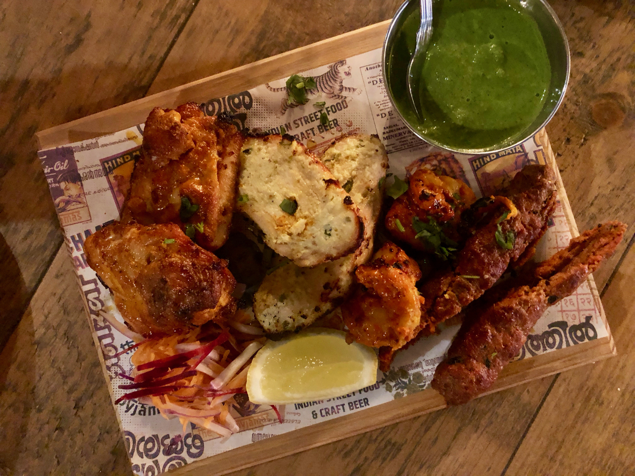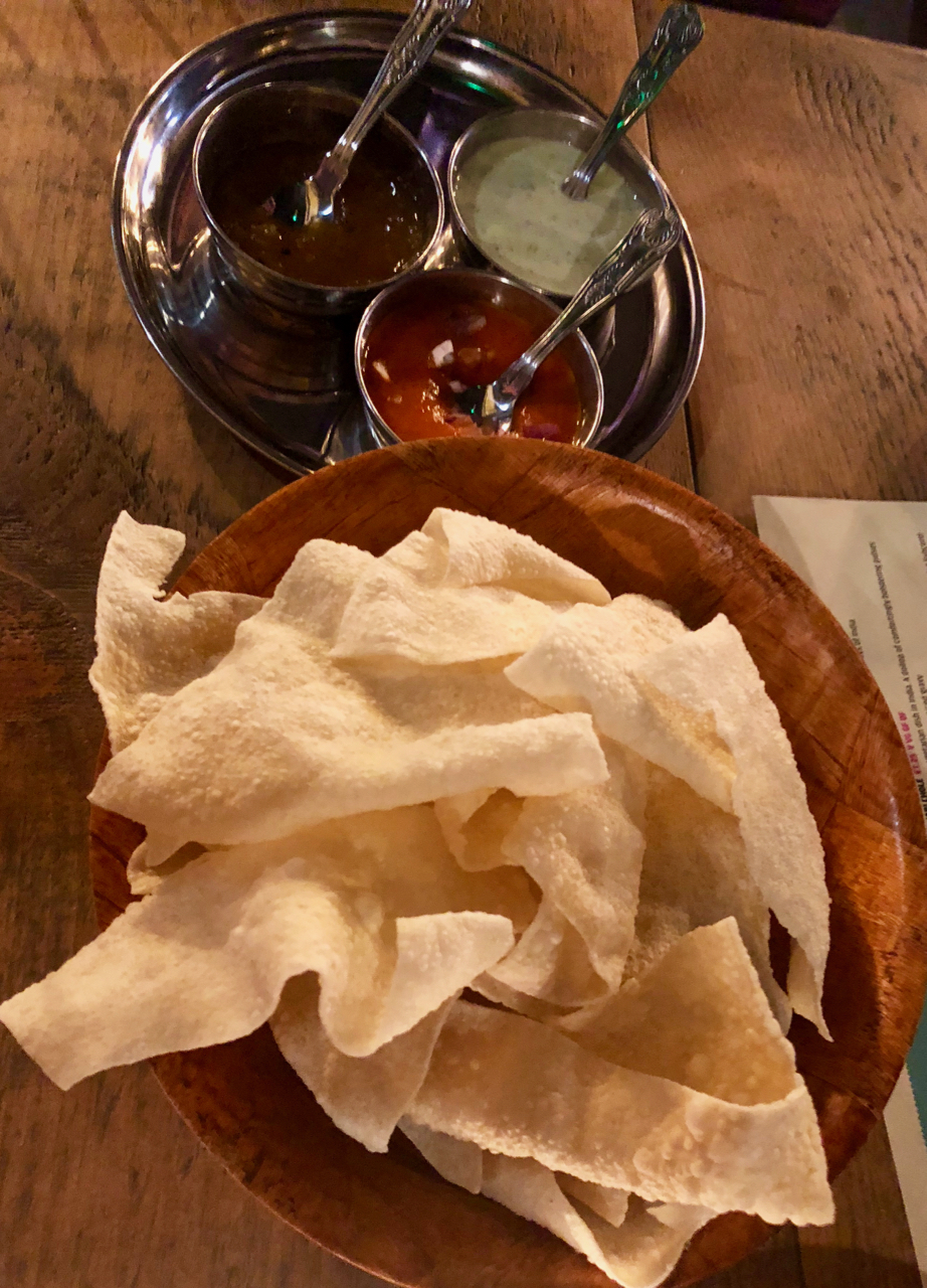 To keep our hands busy along with the beers, we took some poppadoms and a pickle tray to pick over while making further decisions. Those of you who are particularly pedantic about sharing plates absolutely fairly might struggle with the pre-shattered poppadoms, but no such issues were likely to arise as we distracted ourselves from a minor serving catastrophe that required a good number of napkins to rectify. I hadn’t expected the menu to be conventionally categorised into starters, sides and mains rather than a series of small plates and curries. We weren’t bound by convention though so chose a selection of starters to share, along with a curry to share.