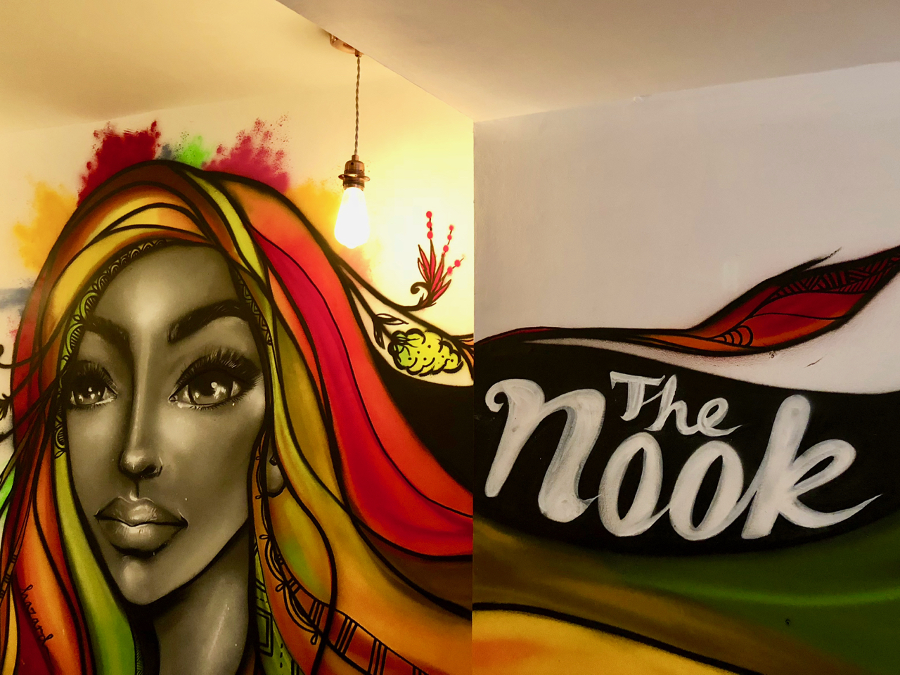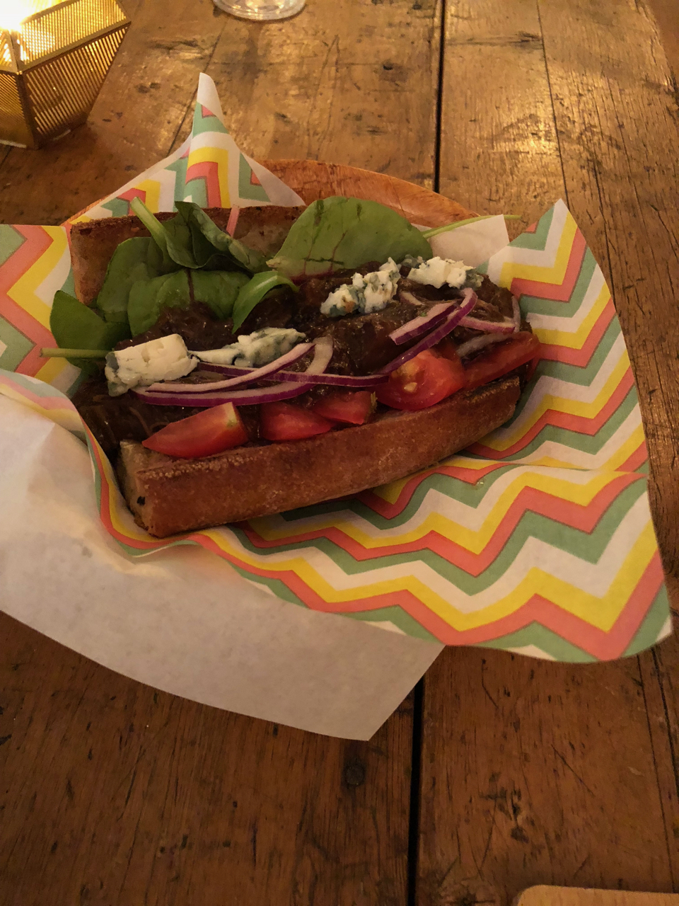 The Nook in York has been based on Castlegate for the last five years, offering drinks and live music, but has now been refurbished into this new identity to offer a range of street food. The layout remains unchanged but the space has been smartened considerably with bright murals and comfortable seating dominating. The menu now is, somewhat unsurprisingly given that self identification, based around a variety of street food. Rather than choosing to specialise in one particular dish, the menu takes a tour of various global dishes such as tacos, po’boy and fattoush along with toasties and burgers.