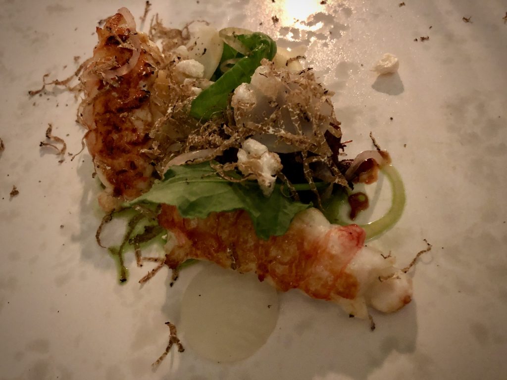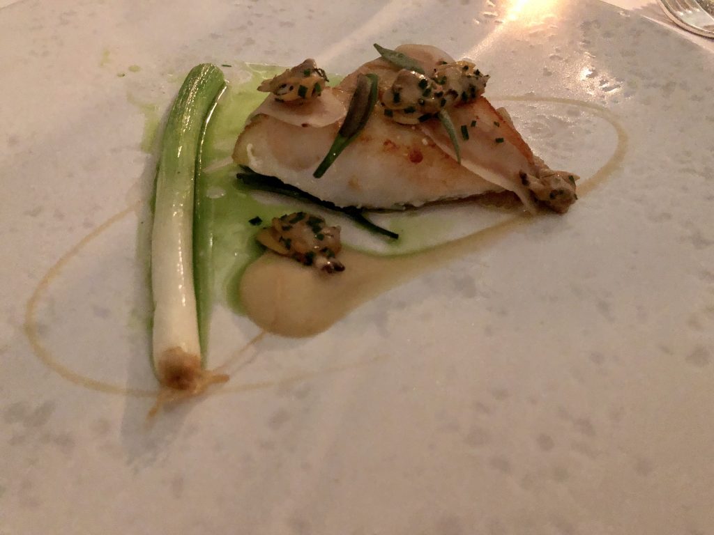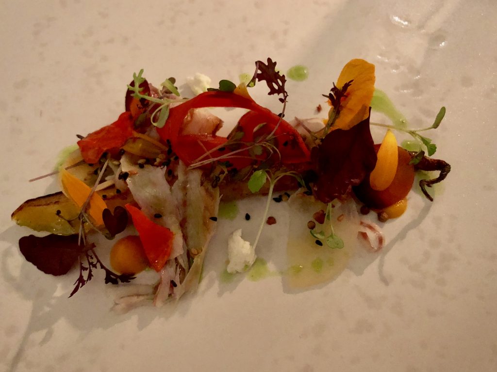 The first of the seven courses we were due was a combination of pork cheek and langoustine, bound together with celeriac and truffle. Given that I love pig cheek, langoustine, celeriac and truffle, it was always going to be a stretch to be disappointed and I certainly wasn’t. Everything was executed perfectly and set high expectations for the next plate of carrot with smoked eel decorated with edible flowers. The Riesling we were served went wonderfully, doing a great job of highlighting the smokey notes, though the carrot could have done with a touch more softening. A minor criticism, but with the standards Paul is aiming for (and achieving), it’s a touch more obvious than usual.