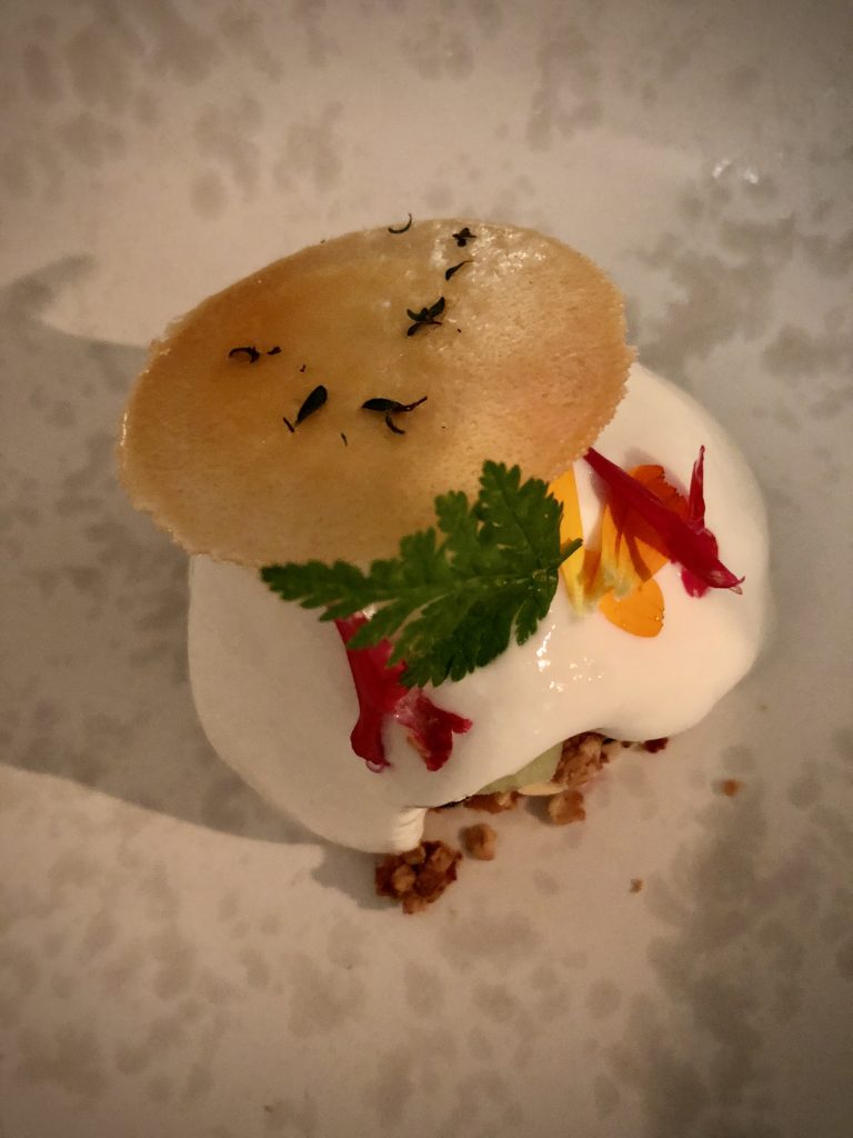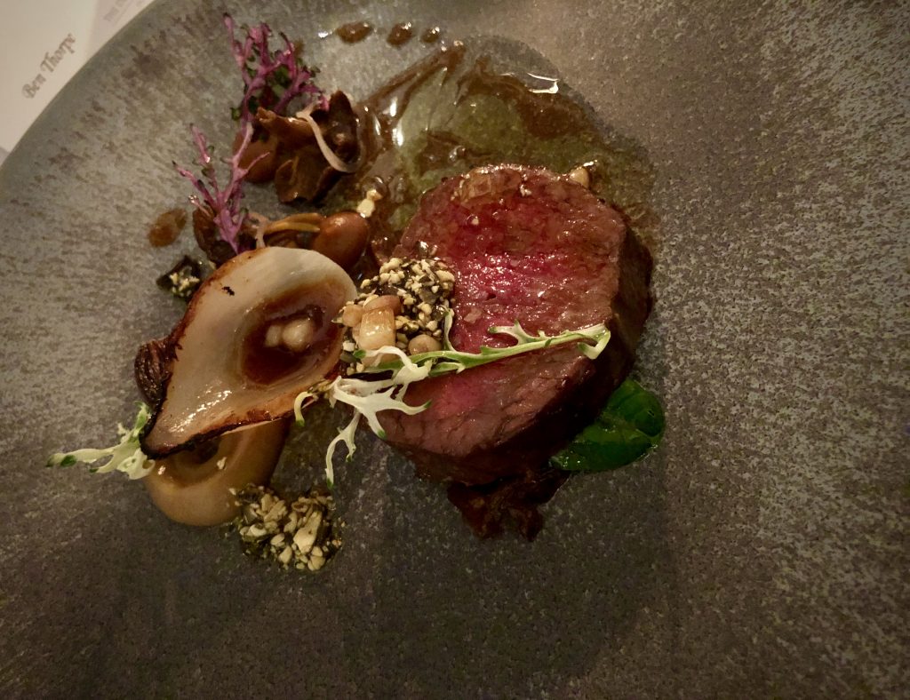 The fish dish put artichoke puree around John Dory, generously paired with clams and a luxurious sauce. The sauce’s rich texture belied a lightness of touch that allowed all the elements to retain their own voices. Venison loin starred in the final savoury course supported by mushroom and onion. When I spoke to Paul later, he was keen to highlight that everything he’d served had been cooked using traditional techniques rather than taking, what could be regarded as, shortcuts such as water baths. The loin was absolutely beyond reproach, well rested and impeccably tender to pair with a classic Chateauneuf De Pape. Even amongst the raised expectations of the evening, this was a tremendously satisfying dish.