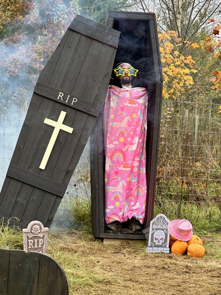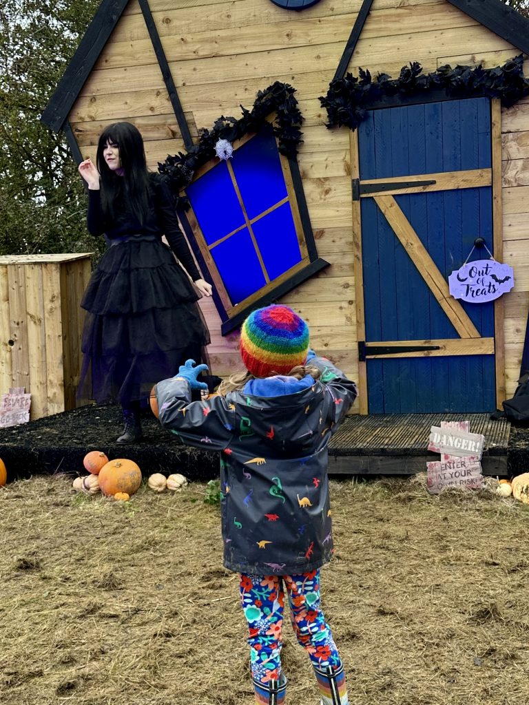 As the weather improved, we made our way outside to start to engage with the various activities out there with den building, mud kitchens, zip lines and masses more to explore. The mole hill tunnels were particularly popular, as well as being muddy – make sure to wear wellies when you visit if the weather has been wet. It’s passed for this year so perhaps less pertinent to your current plans, but we were there for Halloween and found it to be a thoroughly cohesive and well thought through endeavour. On arrival we pre-booked a slot for the trick or treating street, with not a massive idea of what to expect, which when the time came was prompt and well organised with the staff all super-helpful and in character at all times. The experience itself went on for about 40 minutes, stopping at a number of ‘houses’ along a ‘street’ that each contained a different actor with whom to interact and extort sweets from.