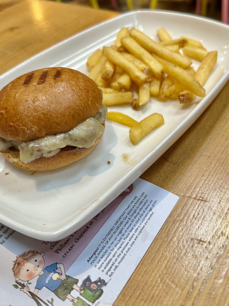By this point we were ready to eat so made our way back to be seated promptly in the busy restaurant and restore our energy for more play. I’ve spoken to chefs before who’ve helped in the kitchen here so expected a touch more than the usual chicken nuggets and hotdogs routine, so was excited to pick on a Korean fried chicken burger that would represent the more adventurous part of the table along with a mini kids burger and a pizza. The Korean chicken thighs were robustly flavoured and spiced, with chilli and gochujang tempered by lettuce and a sweet brioche bun making this by some margin the most interesting thing I’ve eaten in this kind of setting. The presence of a large wood-fired oven suggested that the pizza would hit the spot and it duly delivering, with fresh tomato and plenty of cheese on a base left slightly soft and child friendly while the burger was another pleasant surprise with a well judged hit of caramelisation on the patty which was enrobed by cheese. Suitably fortified, we took another run around the outdoors before rushing back to decorate a chocolate apple with as many sprinkles as our daughter could feasibly encase the chocolate with.
