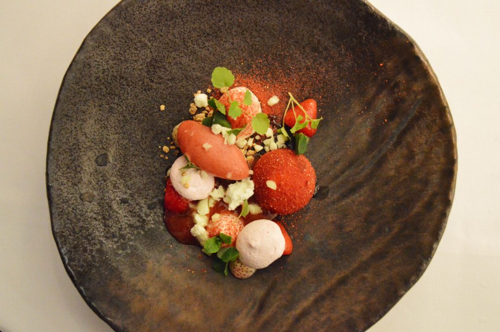 Strawberry formed the base of the final dish with set elderflower coated in strawberry powder, elderflower jelly, basil and mint leaves and a wonderfully realised powder-coated bon bon. The final wine pairing was a late harvest Errázuriz Sauvignon dessert wine that worked brilliantly and was my favourite of those presented throughout the evening.