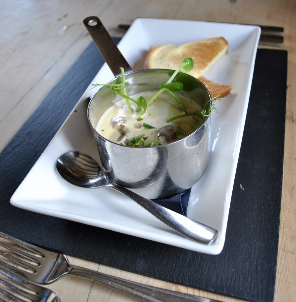 When our attentive waitress Anne-Marie announced that the day’s pie was pork and cider, I had no need to browse the menu any further. It didn’t disappoint. This was one deep pie, with a biscuit-brown shortcrust pastry crust topped with a puff pastry lid. This was brimful of tender, falling-apart pork pieces, sausage meat and a cheeky occasional slice of carrot or button mushroom in a gorgeous light gravy. Real comfort food- and the combination of pastries makes it a real winner. Fancy making your own puff pastry? Of course you don’t. (Even Mary Berry has confessed to buying hers.) This pie is the definition of why it’s worth going out for dinner. The accompaniment of chunky chips and vegetables were faultless, serving as carriers of the tasty gravy made during the pork-wrangling. The generosity of the portions here demonstrates value for money. However, it left me no room to try a pudding. I’m a self-confessed dessert queen, so will return with my own special spoon to sample everything served with custard!