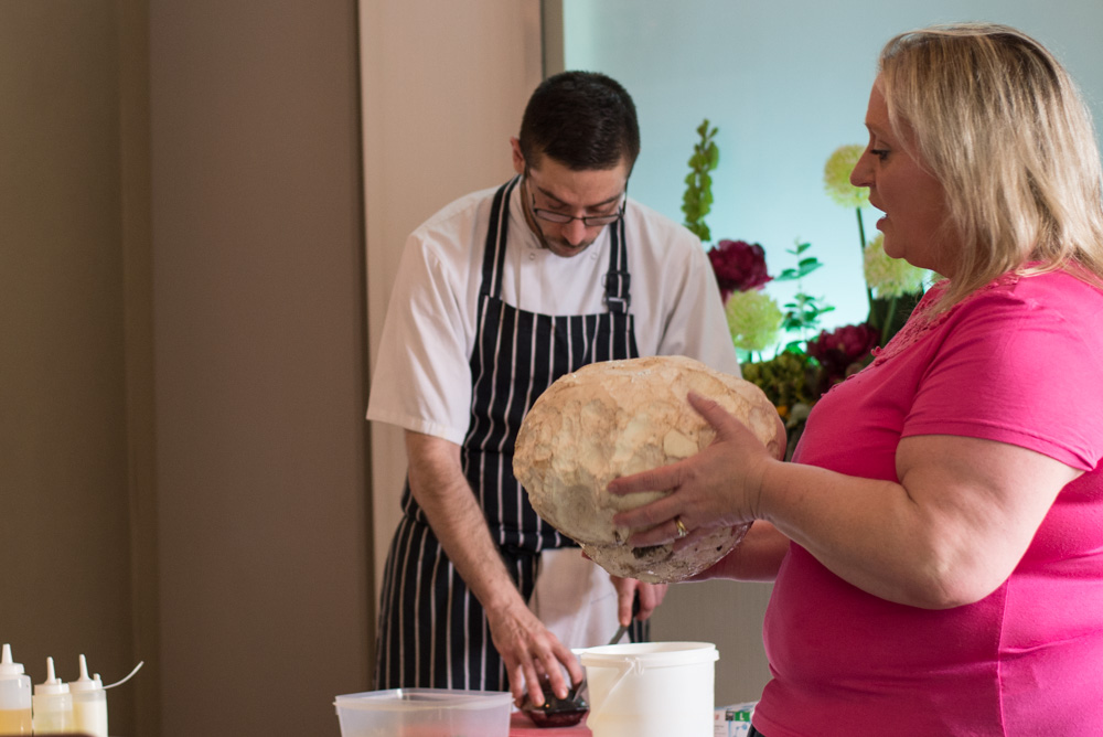 A temporary cooking station had been set up between two tables that afforded all the attendees a good view of Benji prepping and cooking our food, the first course of which was pan-fried wood pigeon breast with beetroot and foraged mushrooms. It should be noted that the mushroom here is not necessarily as one would expect. The giant puffball mushroom we’d been shown earlier by our professional forager was, quite simply, monstrous. We’d never seen anything like it so alongside the ‘chicken of the forest mushroom’ we were eager to get tasting. Sadly there were no prizes for guessing what the latter mushroom tasted of; eerily like chicken to the point of confusion! The mushrooms drew out the earthy flavours of the pigeon alongside delightful beetroot. After being smoked with hay, I expected the beetroot to be a touch more unusually flavoured, but still a well-balanced dish that didn’t betray any nervousness on Benji’s behalf!