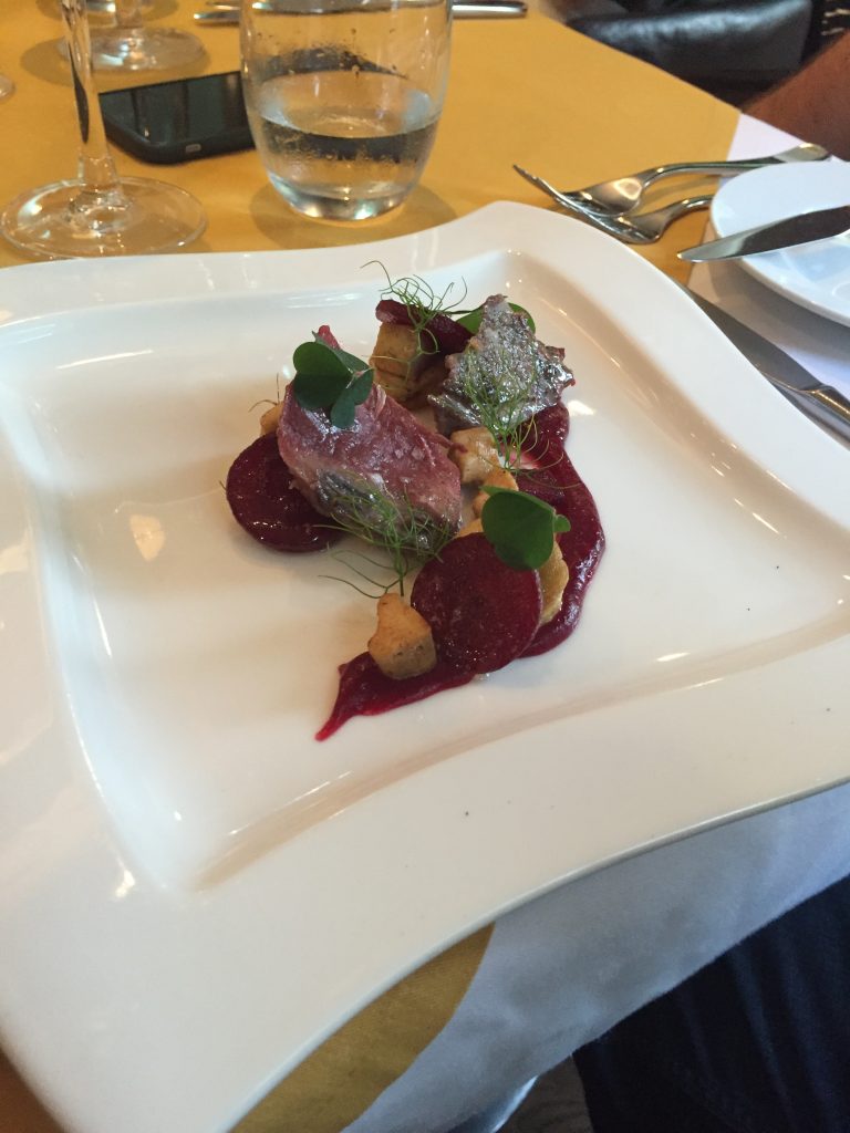 Along with all this, we had a couple of drinks matched with our food: a very distinguished 2012 Crozes-Hermitage lifted the wood pigeon and a rosé prosecco made an interesting pairing with rhubarb and duck. A tawny port rounded things off well.